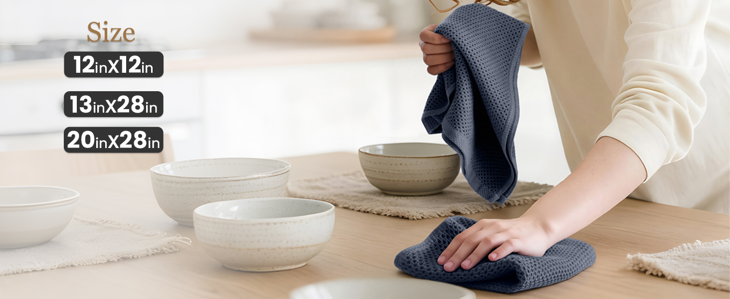• تصميم فائق الامتصاص: مع نسيج قرص العسل الكلاسيكي المجوف، تمتص هذه المجموعة من مناشف الأطباق الماء والسوائل بشكل فعال، وتمسح بقع الزيت بسهولة. فهي متينة وجيدة التهوية وذات قدرة على الامتصاص، مما يساعدك على إكمال تجفيف المطبخ ومسحه والمهام الأخرى بسهولة