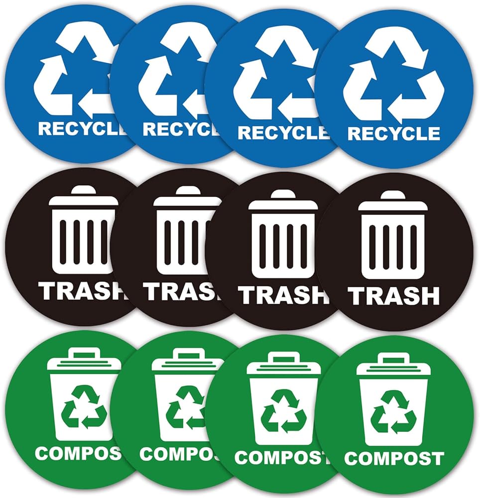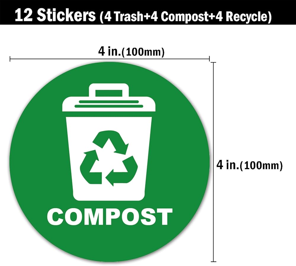 Versatile Use: Our 12 Pack Trash Compost Recycle Stickers are perfect for both outdoor and indoor settings, providing reliable signage for waste management. Whether you need to label bins in your backyard or organize recycling efforts at home or in the office, our stickers are designed to meet your needs.