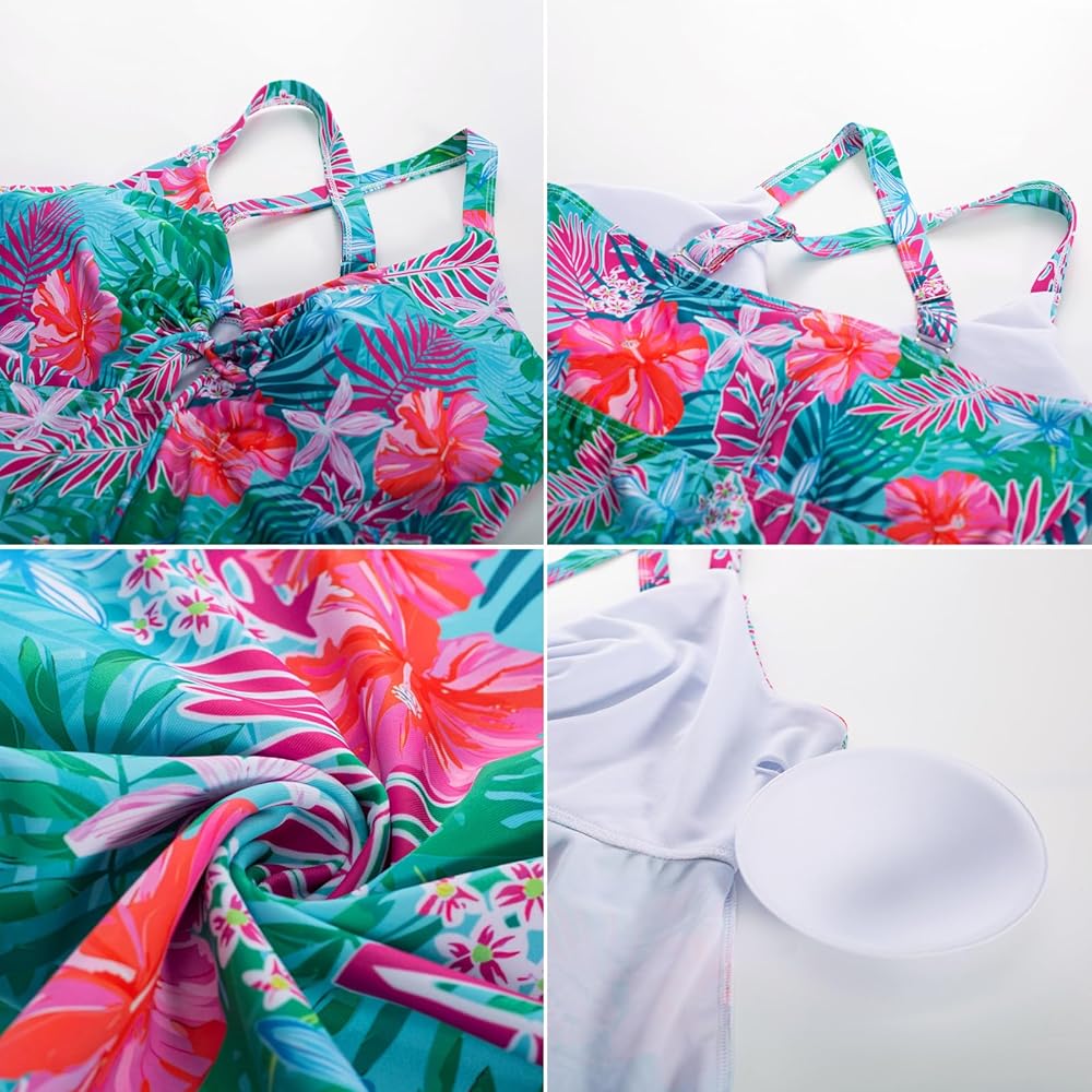• √ التصميم: ملابس سباحة عالية الخصر للتحكم في البطن تتميز برقبة على شكل حرف V مع تفاصيل فتحة المفتاح تجعلك تبدين لطيفة وأنيقة؛ حافة المنديل المتدفقة تشبه الفستان؛ حمالة صدر مبطنة قابلة للإزالة بدون سلك داخلي مع أحزمة كتف قابلة للتعديل وربطة عنق أمامية تمنحك دعمًا كافيًا للثدي.