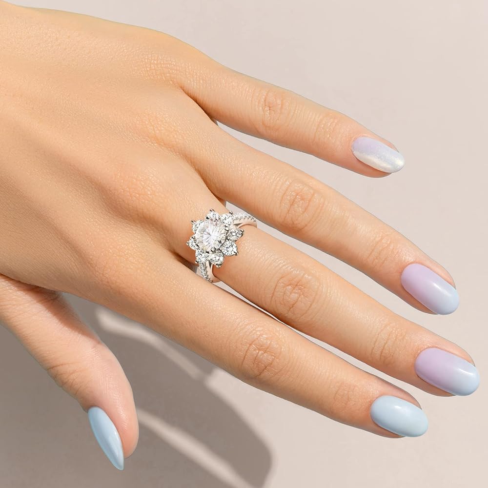 【جودة عالية】هذا الخاتم مزود بشهادة مويسانيتي GRA، ويسهل اجتياز اختبار الماس بنسبة 100% إلى أعلى نقطة. مع تقنية الإعداد المتقدمة والطلاء الخاص، لا داعي للقلق بشأن سقوط الأحجار أو فقدان بريقها.