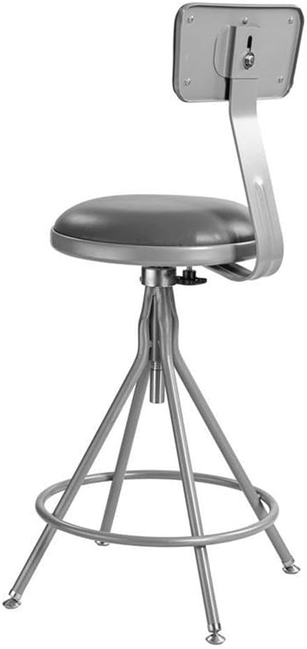 مقعد بيمبرلي مبطن بارتفاع 24-30 بوصة من الفولاذ والفينيل قابل للتعديل، مقعد دوار رمادي شديد التحمل مع مسند ظهر، أبعاد 16 × 16 بوصة، سعة وزن 300 رطل، مختبر حديث أو استخدام في الفصل الدراسي