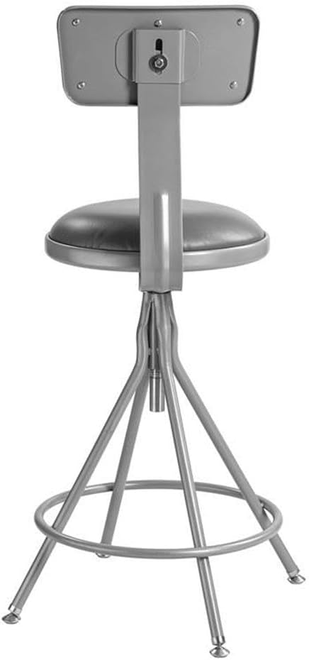 Institutions interested in ultimate strength, comfort and access for their hands-on educational environments need look no further than the heavy-duty padded swivel stools with backrests. They're the best option for settings like art rooms, science labs, home economics or shop classrooms. These reliable stools feature a sturdy frame of 18-gauge steel tubing securely welded to a 14" diameter seat pan. Riveted through the steel pan are 1.5"-thick gray vinyl cushioning that will provide years of dependable use. Swivel seat spins with ease 360 degrees enabling users to maximize their workspace. Footrest ring is securely bonded to each leg with four spotwell contact points for extra fortification. Height-adjustable from 24" to 30" and adjustable padded backrests can be moved 2" up/down and forward/back. Rotating metal floor glides keep the stool level and prevent any floor damage.