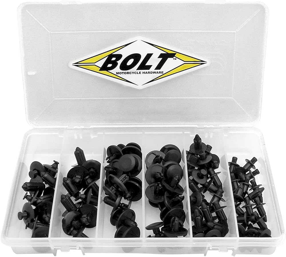 20 of each of the most popular plastic clips for both sport bikes and scooters: M6 3-stage push rivets, M7 3-stage push rivets, M7 2-stage pry rivets, and M8 3-stage push rivets, meeting or exceeding OEM specifications. M8 Pry - Matches factory Honda ATV and CRF-modeled 50cc pit bikes, 8mm Diameter, 20mm Length, 15.2mm Head Diameter. M6 Push - Very common on Suzuki, Yamaha, Honda, and Kawasaki models, 5.9mm Diameter, 8.5mm Length, 12mm Head Diameter. M8 Push - Used on many brands of sport bikes, ATV's and scooters, 8mm Diameter, 11.3mm Length, 19.7mm Head Diameter. M7 - Found on newer sport bikes, Pry: 6.8mm Diameter, 10mm Length, 20mm Head Diameter, Push 6.8mm Diameter, 10mm Length, 14.9mm Head Diameter.
