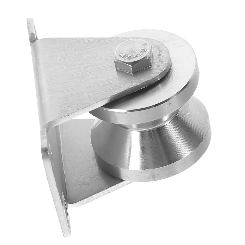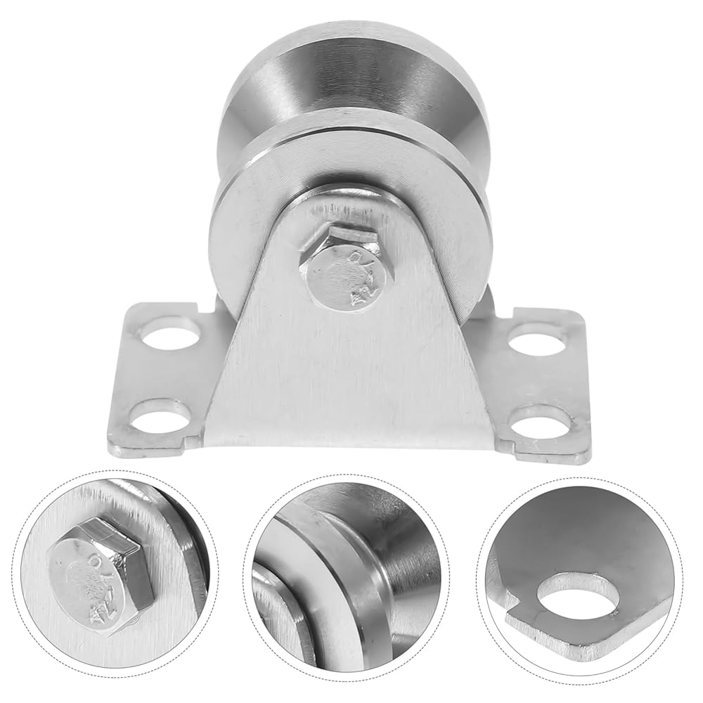 pulley block The roller is designed with a bearing, which ensures smooth and quiet operation.Pulley for Door The special small V-groove width makes it ideal for narrow doorways.Stainless Steel Pulley Wheel This sliding door track roller is made from stainless steel, which is resistant to and can withstand long-term use
