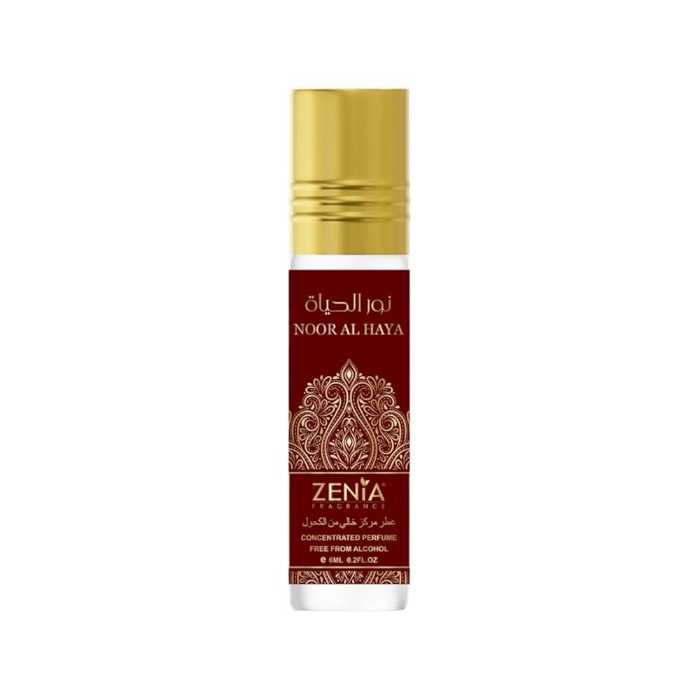 Elegant Fresh and Musky Perfume Oil – Noor Al Haya by Zenia is a concentrated roll-on fragrance oil that blends crisp freshness with deep florals and oud for a luminous, refined scent.