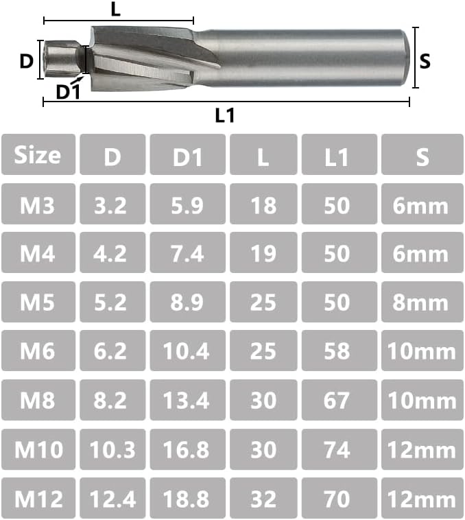 7 قطعة/المجموعة نهاية قاطعة الطاحونة الحفر لقم تفريز HSS Counterbore نهاية مطحنة M3-M12 الطيار الشق أداة قاطعة المطحنة غاطسة نهاية المطاحن راوتر بت