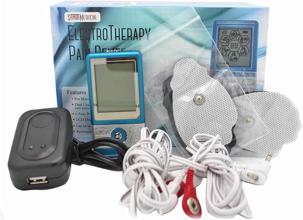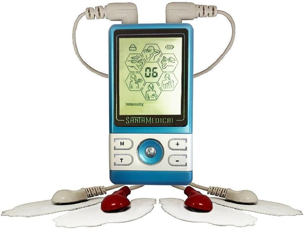 Santamedical PM-470 Rechargeable Tens Unit Electronic Pulse Massager is a compact, portable, micro-computer controlled device. It can be used in many areas in your body, including arms, neck and shoulders, back, low back, legs, feet, joints etc. It may help to relieve pain and numbness in the following situations: Stiff neck; Muscle pains from over-exercise or stretch; Numbness from some chronic condition; Carpal-tunnel syndrome; Relieve pain and relax muscle spasms, or may prevent muscle atrophy. Recharge the internal lithium battery to keep them powered up for massages