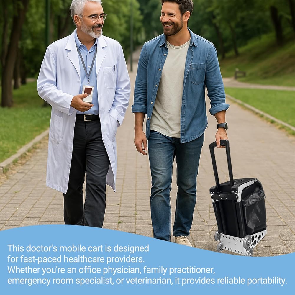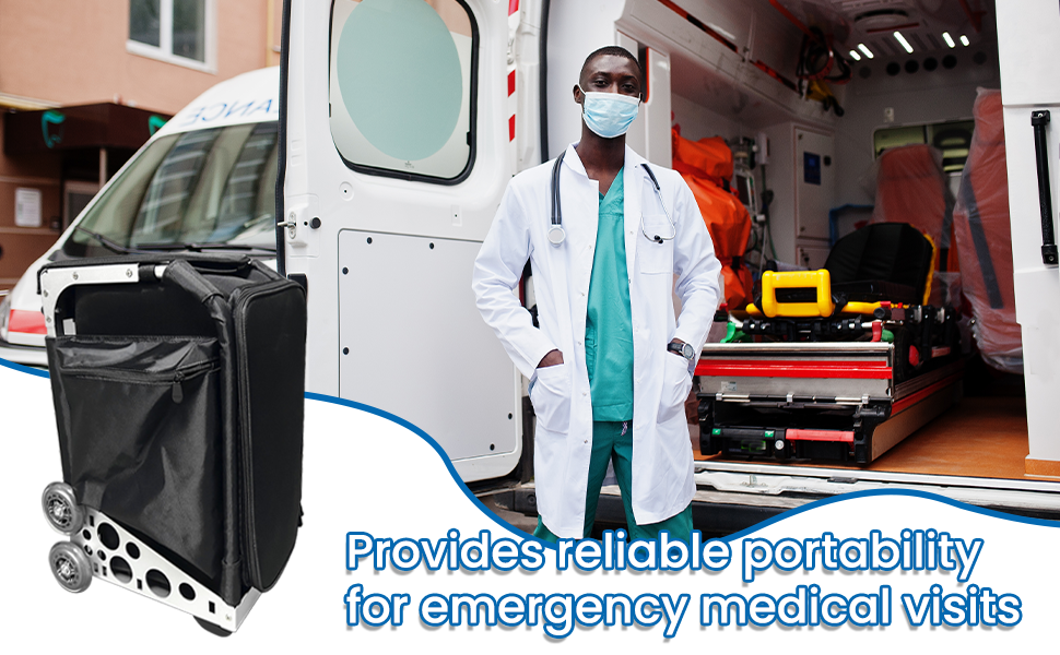 مصنوع من إطار من سبائك الألومنيوم المقوى الذي يدعم ما يصل إلى 200 رطل، ويتحول بسهولة إلى مقعد راحة فوري للأطباء أثناء الجولات المزدحمة.
