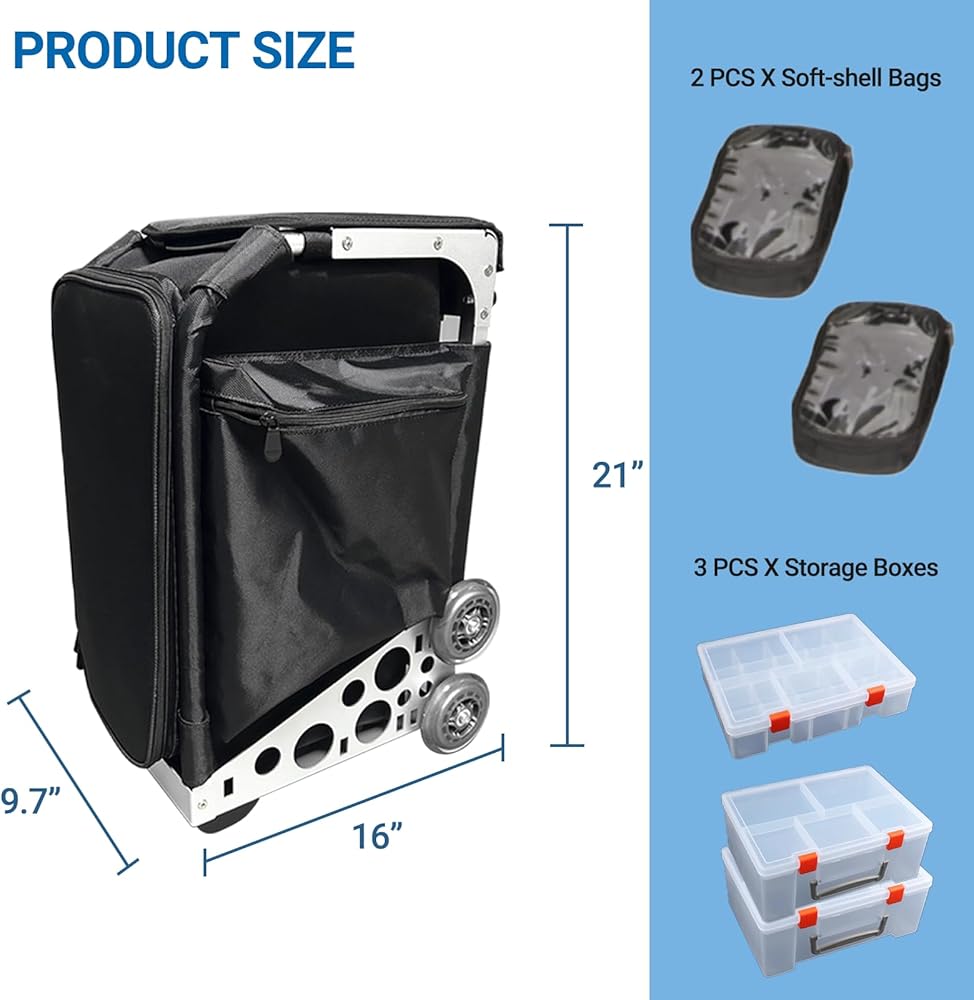 كاملة مع حقيبتين شفافتين و3 صناديق تخزين شفافة مقسمة، مما يشكل نظام تخزين متعدد الاستخدامات يضمن الوصول المرئي والسريع إلى الإمدادات الأساسية.