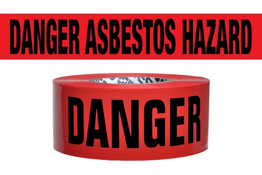 شريط حاجز تحذيري من Presco B3103R1 مقاس 3 بوصات × 1000 قدم 3 مل، أحمر "خطر الأسبستوس"، ارتفاع 7.25 بوصة، عرض 3 بوصة، طول 7.25 بوصة