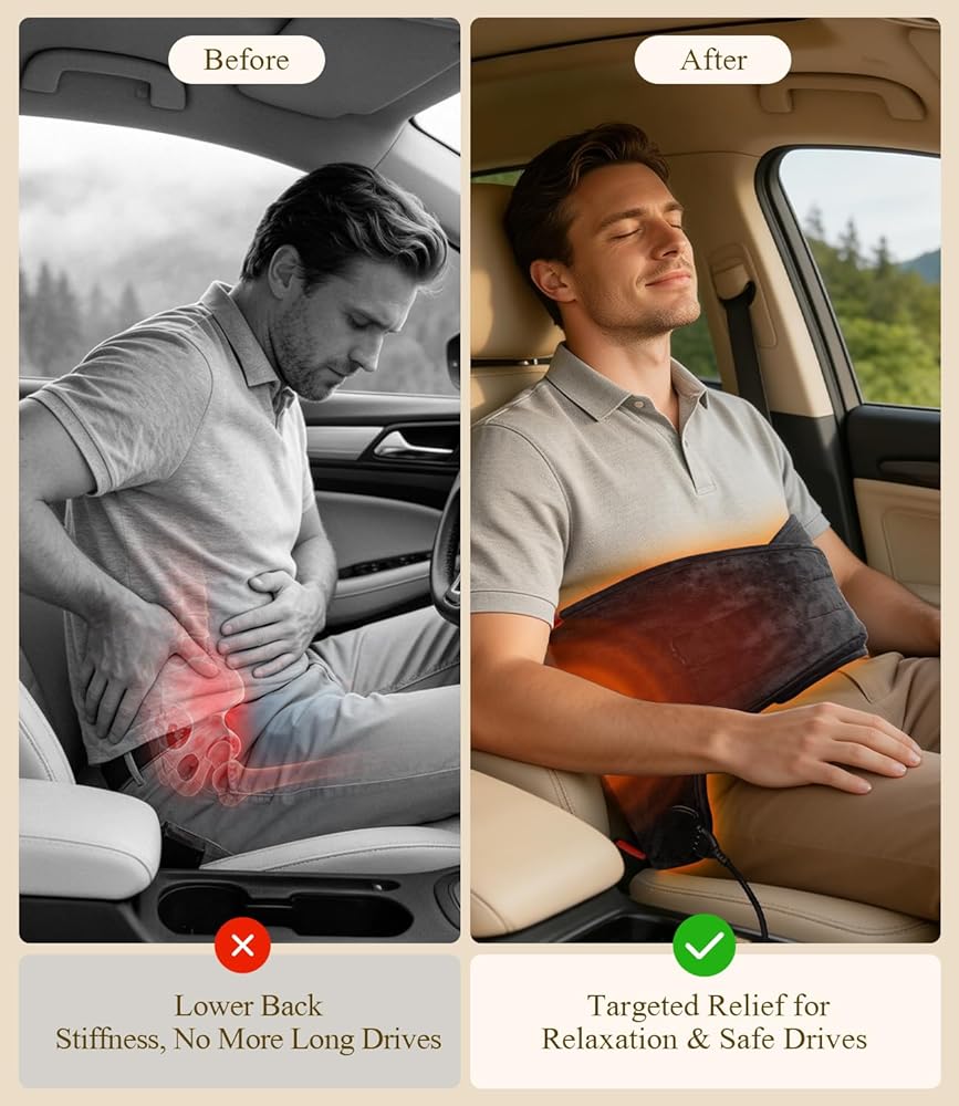 حزام تسخين السيارة لسائقي الشاحنات: كهربائي 12/24 فولت ساخن للغاية 159 درجة فهرنهايت - 30 ثانية تخفيف أكثر دفئًا لأسفل الظهر - اخرج دون إعاقة بعد القيادة طوال اليوم - إيقاف تلقائي لمدة 4 ساعات وقابل للغسل