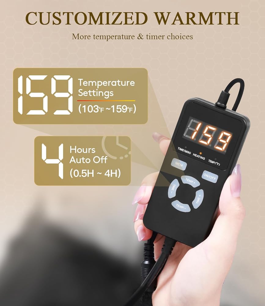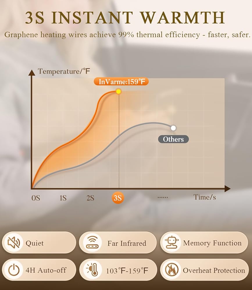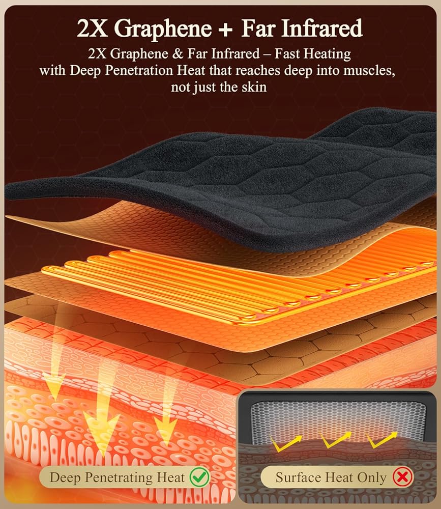 159 درجة فهرنهايت ساخنة للغاية مع الأشعة تحت الحمراء البعيدة - الحرارة التي تتغلغل بعمق في عضلات الظهر - على عكس البطانيات الساخنة القياسية 12 فولت/24 فولت التي يصل الحد الأقصى إلى 130-140 درجة فهرنهايت، توفر بطانية سائق الشاحنة هذه دفء مكثف يصل إلى 159 درجة فهرنهايت يتغلغل بعمق في العضلات والأنسجة - وليس فقط الجلد. تساعد تقنية الأشعة تحت الحمراء البعيدة على استرخاء عضلات الظهر المشدودة وتحسين الدورة الدموية وتقليل التيبس الذي يتراكم ساعة بعد ساعة. لأن الحرارة السطحية لن تقطعها عندما تكون على الطريق طوال اليوم.
