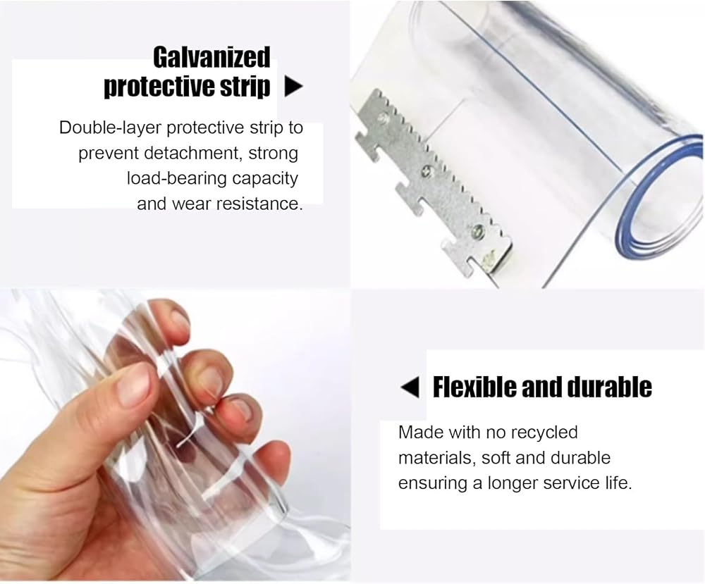 • Humanized Design: Our PVC Strip Curtain features a flexible design that allows easy entry from any angle. It's soft and non-adhesive, ensuring safety for hands and effectively protecting children. High Visibility: The clear design of the strip curtain enhances visibility, making it easy to see through and navigate, while maintaining a comfortable environment. Perfect for Home and Business Use.
