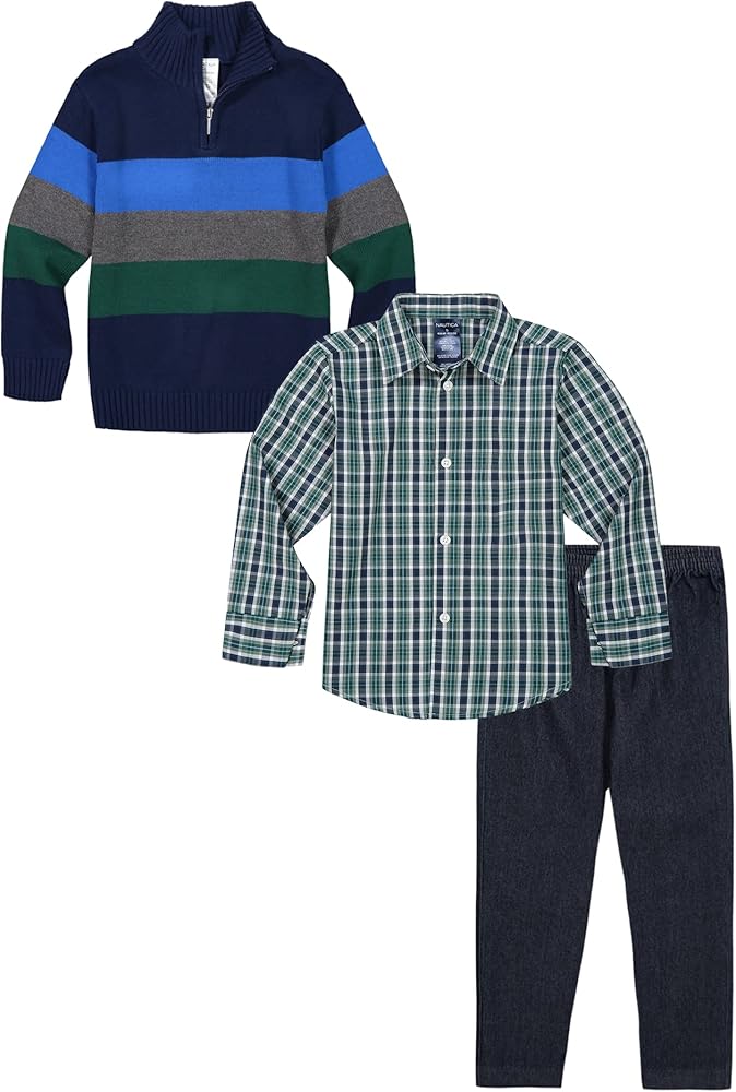 ثلاث قطع مثالية للطقس غير المتوقع عندما يستطيع ارتداء الملابس أو خلعها، وتتميز بسترة مخططة بسحاب 1/4 وقميص مطبوع مع بنطال رياضي من نسيج قطني مضلع لإكمال مظهره.