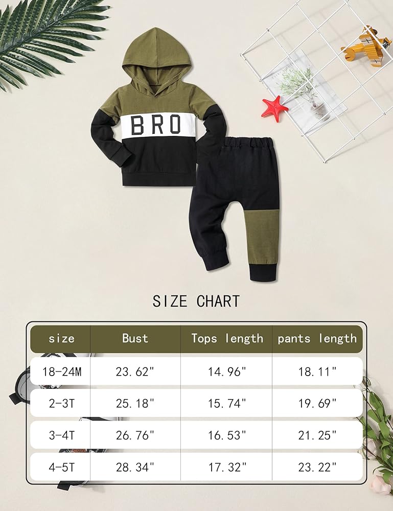 【المقاس الأنسب】توفر لك ملابس الأولاد الصغار هذه مجموعة من المقاسات المختلفة. لدينا ملابس للأولاد الصغار 18-24 شهرًا، ملابس للأولاد 2-3T، ملابس خريفية للأطفال الصغار 3-4T، ملابس شتوية للأطفال الصغار 4-5T، ملابس للأولاد الصغار 5-6T لتختار من بينها. يرجى الرجوع إلى جدول المقاسات في وصف المنتج لاختيار المقاس المناسب لأولادك.