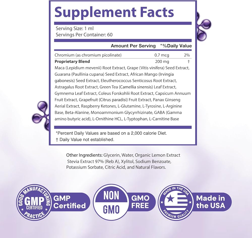 قطرات جيلاتيد السائلة بمستخلصات نباتية - تركيبة طبيعية مع الماكا، ومستخلص بذور العنب، والكروم ومزيج الأعشاب - غير معدلة وراثيًا، وخالية من المنشطات - صنع في الولايات المتحدة الأمريكية - 2 أونصة سائلة، 60 حصة، كمية تكفي لمدة شهر واحد