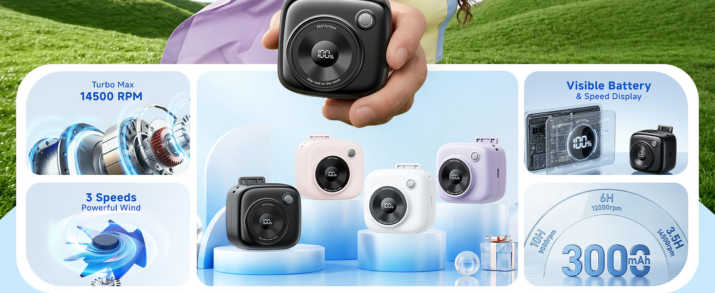 【بطارية قابلة للشحن بقوة 3000 مللي أمبير في الساعة لمدة تصل إلى 10 ساعات】: توفر البطارية المدمجة القابلة لإعادة الشحن بسعة 3000 مللي أمبير في الساعة طاقة طويلة الأمد لمدة تصل إلى 10 ساعات من الاستخدام، اعتمادًا على إعدادات السرعة. يساعد على الحفاظ على حركة الهواء عندما تكون في أمس الحاجة إليه، سواء كنت تعمل بالخارج أو تسافر أو تقضي وقتًا في المتنزهات أو الأحداث الرياضية أو مواقع العمل.