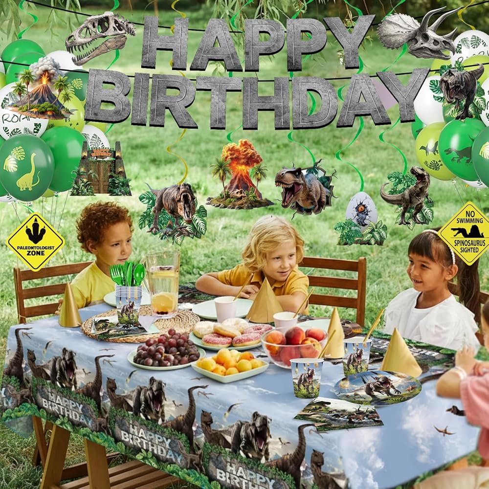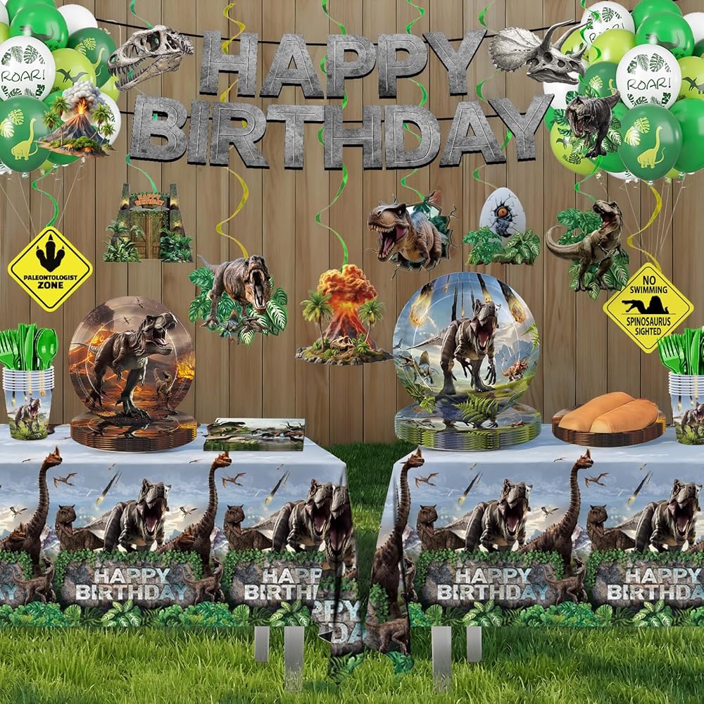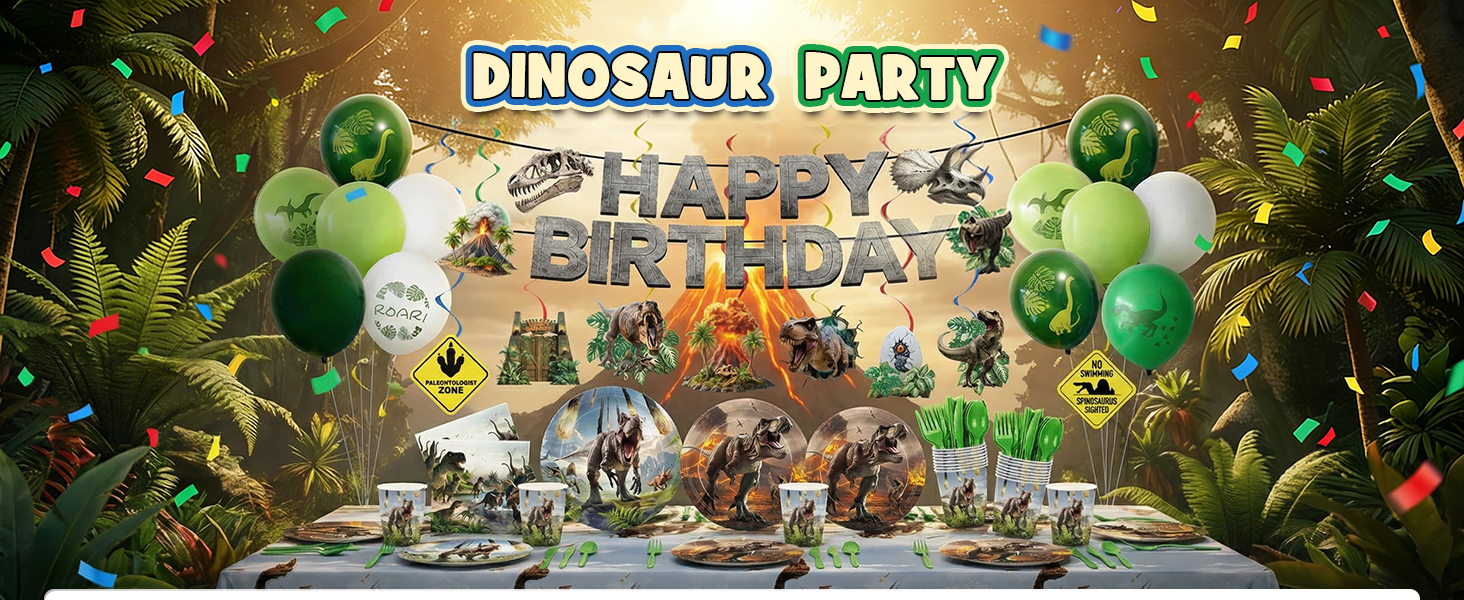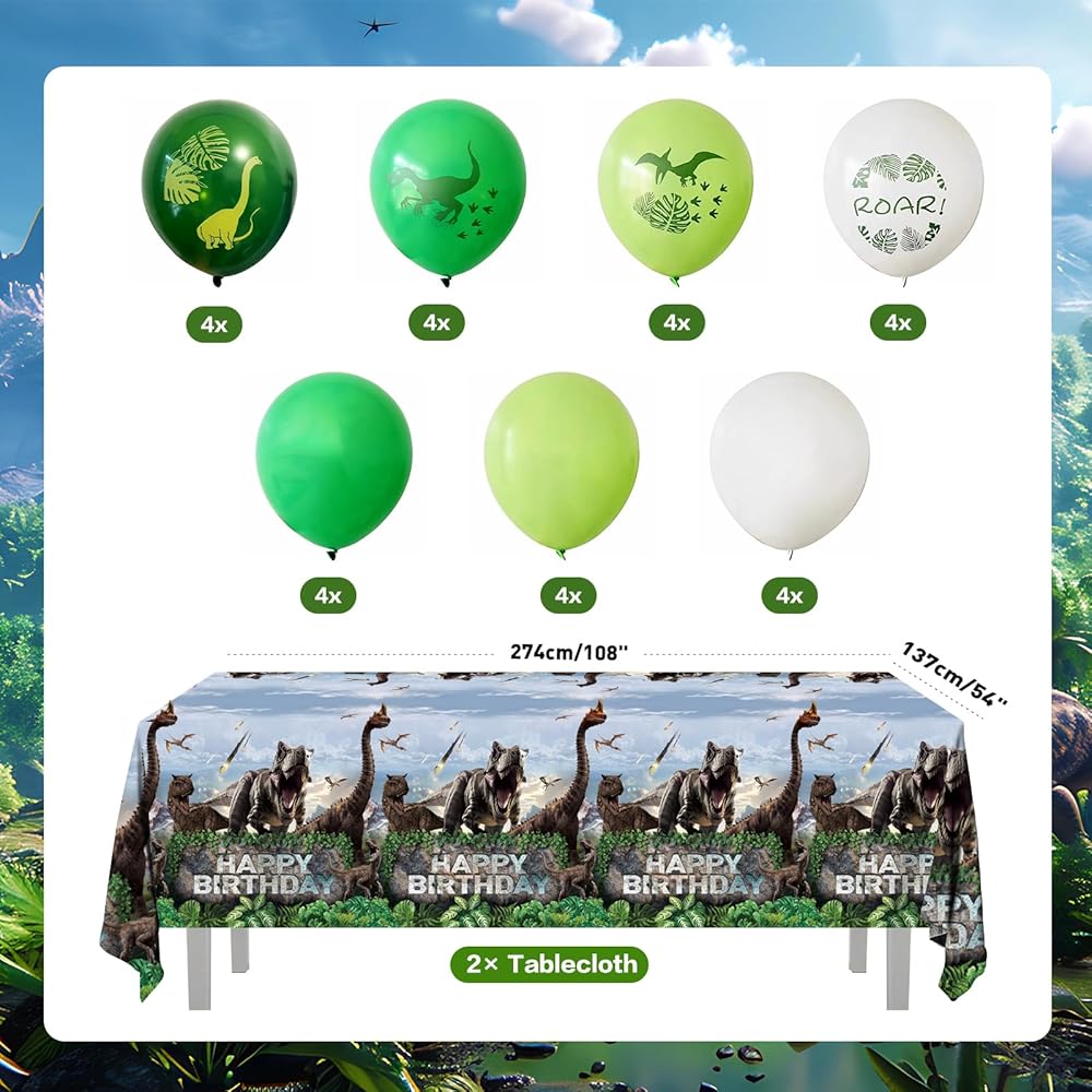 • ديكورات حفلات الديناصورات: مجموعة أدوات مائدة الحفلات من دينو وورلد تتضمن 24 قطعة من أطباق العشاء مقاس 9 بوصة، 24 قطعة من أطباق الحلوى مقاس 7 بوصة، 24 قطعة منديل مقاس 6.5 بوصة، 24 قطعة أكواب ورقية، 24 قطعة سكاكين خضراء وشوك وملاعق، مجموعة من لافتة عيد ميلاد سعيد، 8 قطع من الدوامات المعلقة، 28 قطعة بالونات، قطعتين مفارش طاولة مقاس 54 بوصة × 108 بوصة. ارفع احتفالك بطابع الديناصورات مع لوازم حفلات عيد ميلاد الديناصورات الخاصة بنا.