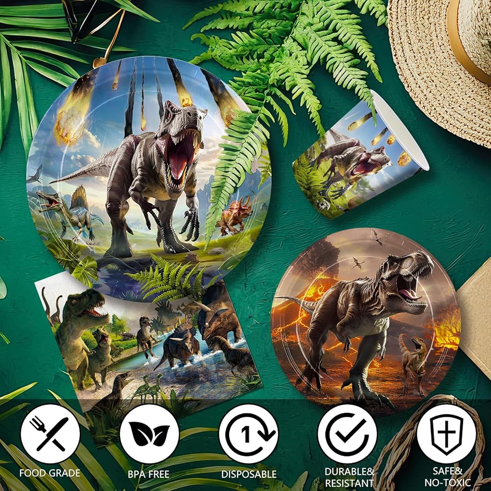 • مواد عالية الجودة: مناديل أطباق الديناصورات الخاصة بنا مصنوعة من مواد ورقية عالية الجودة، ومواد صالحة للطعام، وغير سامة، وعديمة الرائحة، وخفيفة، ولن تطوى، وتنكسر بسهولة، وهي مناسبة جدًا للحلوى، وأطعمة الحفلات، وتوفر السلامة والمتانة.