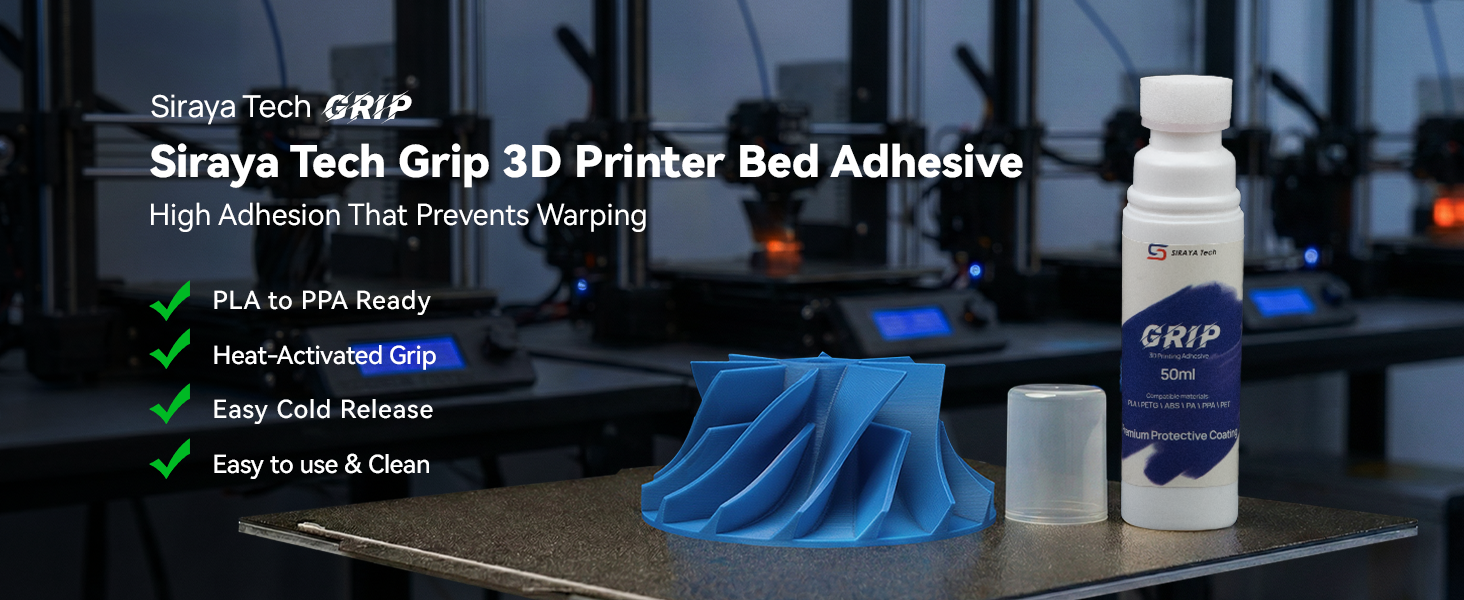 التوافق العالمي (PLA إلى PPA): اكسر حاجز المواد بحل واحد. تم تصميم Siraya Tech Grip ليس فقط من أجل PLA وABS وPETG، ولكن من أجل البلاستيك الهندسي عالي الأداء بما في ذلك PPA وPEBA ونايلون ألياف الكربون (PA-CF) والكمبيوتر الشخصي. إنه المادة اللاصقة المتكاملة لكل خيوط في مكتبتك.