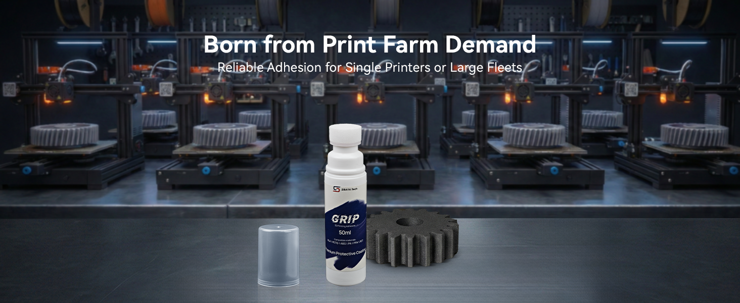 ولدت من طلب مزرعة الطباعة: تم تطويرها استجابة للاحتياجات الصارمة لمزارع الطباعة ثلاثية الأبعاد التجارية، Siraya Tech Grip هو الحل لموثوقية الإنتاج الضخم. تم تصميمه لتحمل دورات الطباعة على مدار 24 ساعة طوال أيام الأسبوع، وهو يزيل معدلات الفشل المتغيرة للمواد اللاصقة القياسية، مما يضمن أن ينتج أسطولك مطبوعات متسقة وناجحة في كل مرة - سواء قمت بتشغيل طابعة واحدة أو مائة.