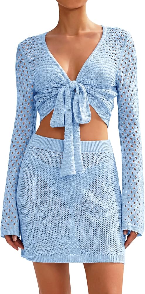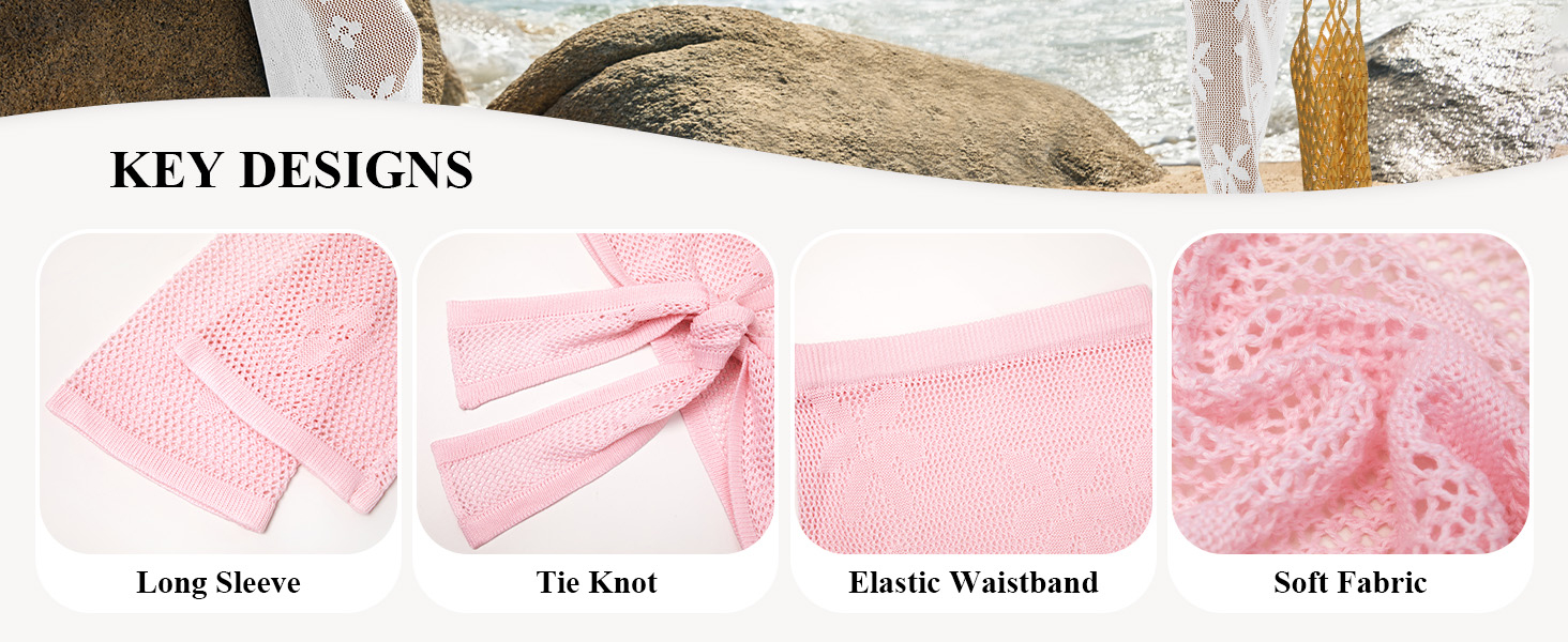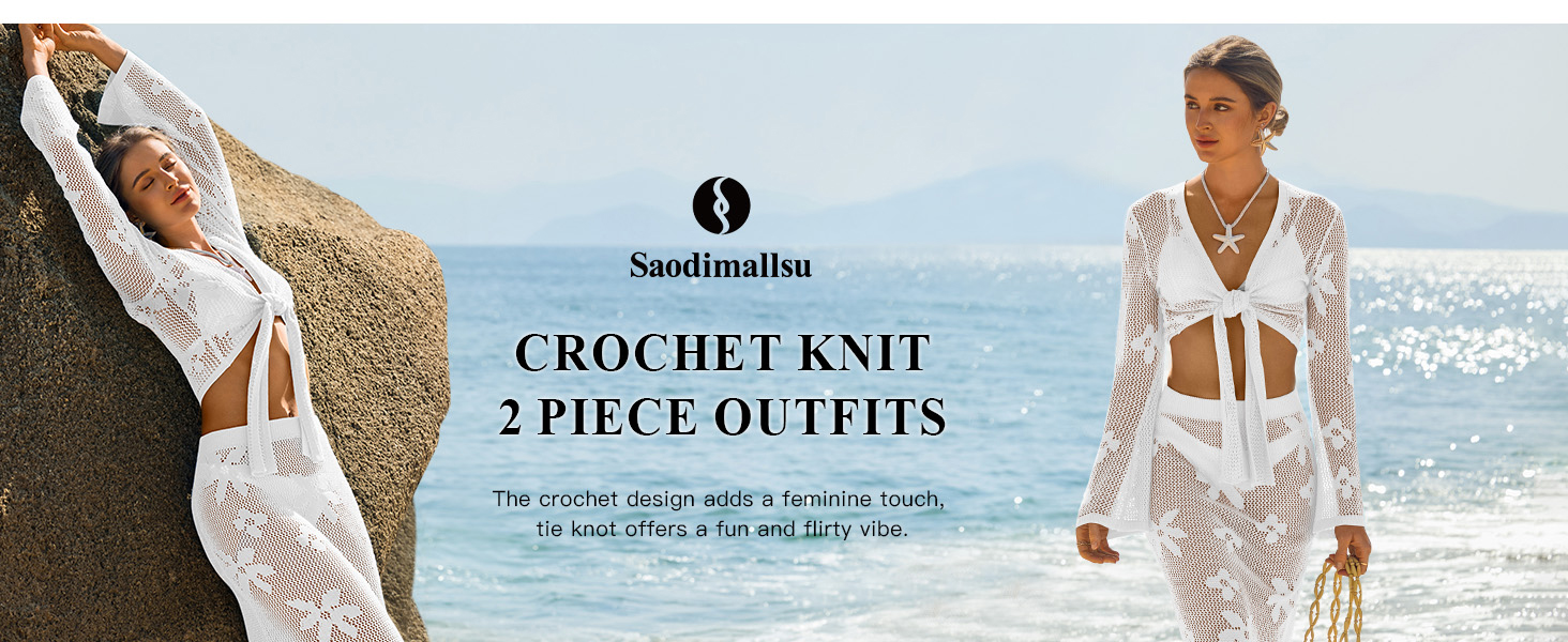 UNIQUE DESIGN: The 2 piece crochet cover up feature lightweight boho knit, v neck, tie wrap front closure, adding a touch of feminine taste. Our women's swimwear cover ups is not just a set of clothing, it's a fashion trends and functional knitwear