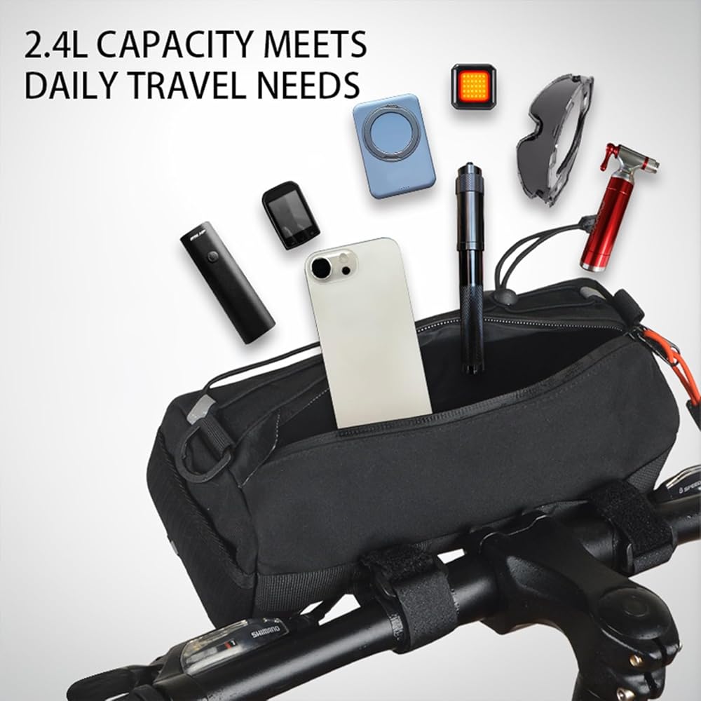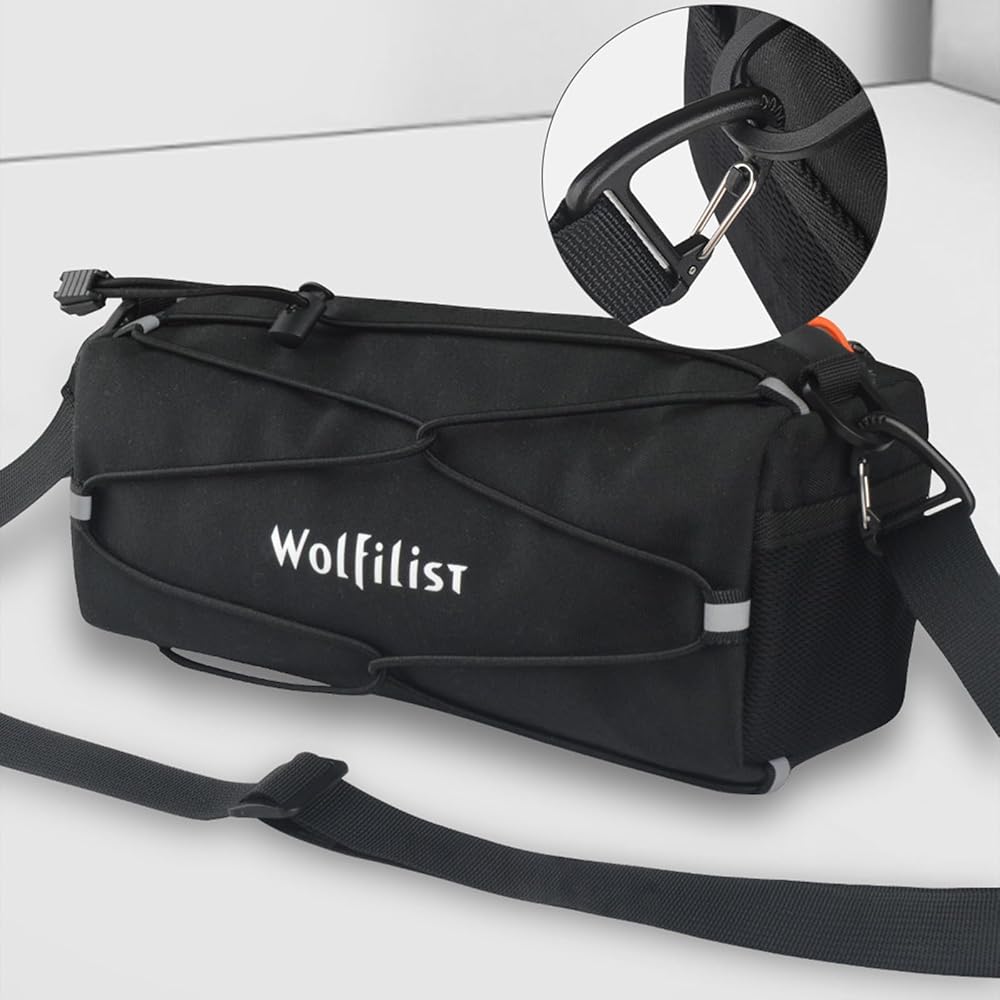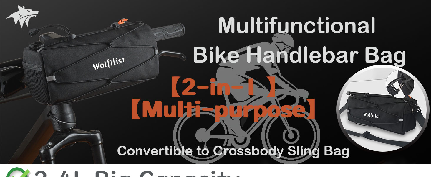 حقيبة مقود الدراجة متعددة الوظائف من WOLFILIST - حقيبة أمامية بإطار دراجة مقاوم للماء سعة 2.4 لتر، مقود قابل للتحويل إلى حقيبة حبال حول الجسم، تصميم بسيط للدراجات الجبلية/الطرق