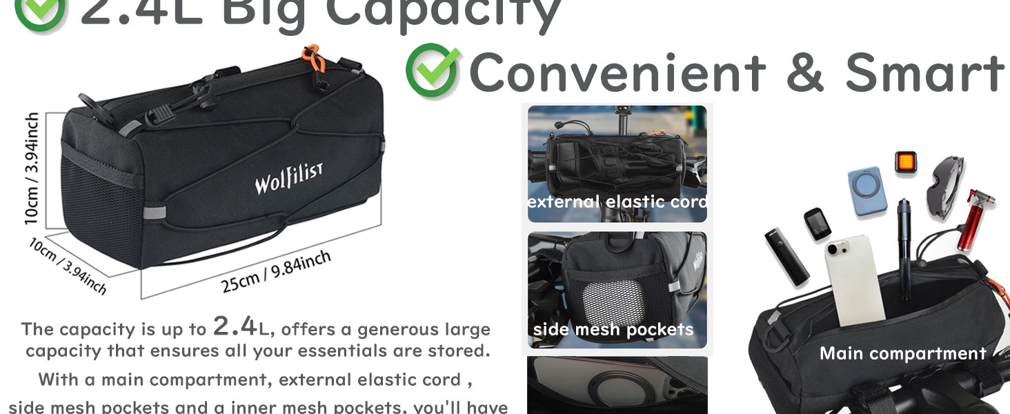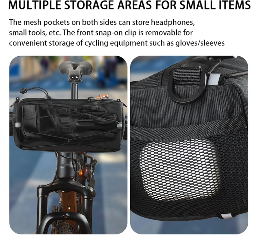 تصميم قابل للتحويل 2 في 1: من المقود إلى الجسم، يتكيف مع أي سيناريو لركوب الدراجات، يمكنك التبديل بسهولة بين حقيبة مقود الدراجة، وحقيبة حمل حول الجسم - مثالية للتنقل (احتفظ بالأساسيات مثل الهاتف والمحفظة في متناول اليد)، وجولات ركوب الدراجات (التخزين الآمن للوجبات الخفيفة، والأدوات)، أو الرحلات غير الرسمية. حقيبة واحدة، طرق متعددة للاستخدام، لا حاجة لمعدات إضافية.