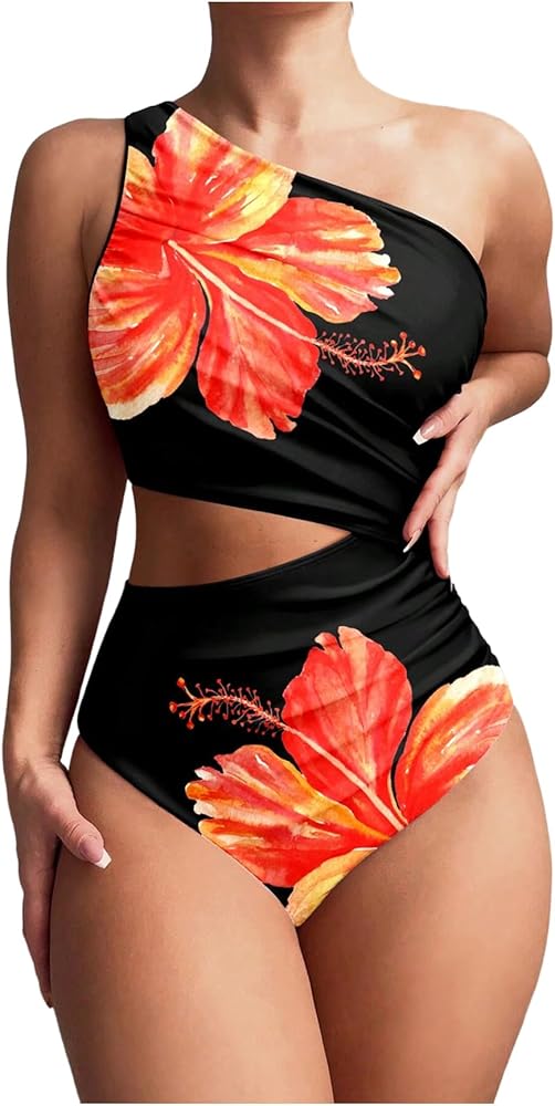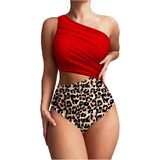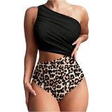 بدلة سباحة نسائية من قطعة واحدة من Floerns بكتف واحد وطبعة جلد الفهد ومكشكشة على الجانب in Kuwait