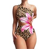 • Features: Cut out, cheetah print, off the shoulder, one piece swimsuit for women