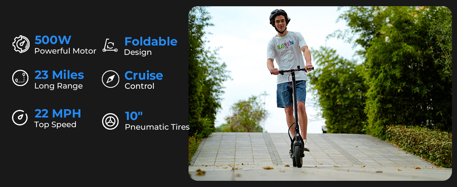 • 【قابلية النقل】يزن هذا السكوتر الإلكتروني 33 رطلاً فقط، وهو خفيف الوزن ولكنه متين، مما يجعل من السهل حمله في أي مكان. يتيح لك تصميمه سريع الطي طيه في ثوانٍ للتنقل بمترو الأنفاق أو تخزين صندوق السيارة أو المساحات الضيقة - وهو مثالي لركوب المدينة والسفر في الحرم الجامعي والتنقلات المكتبية.