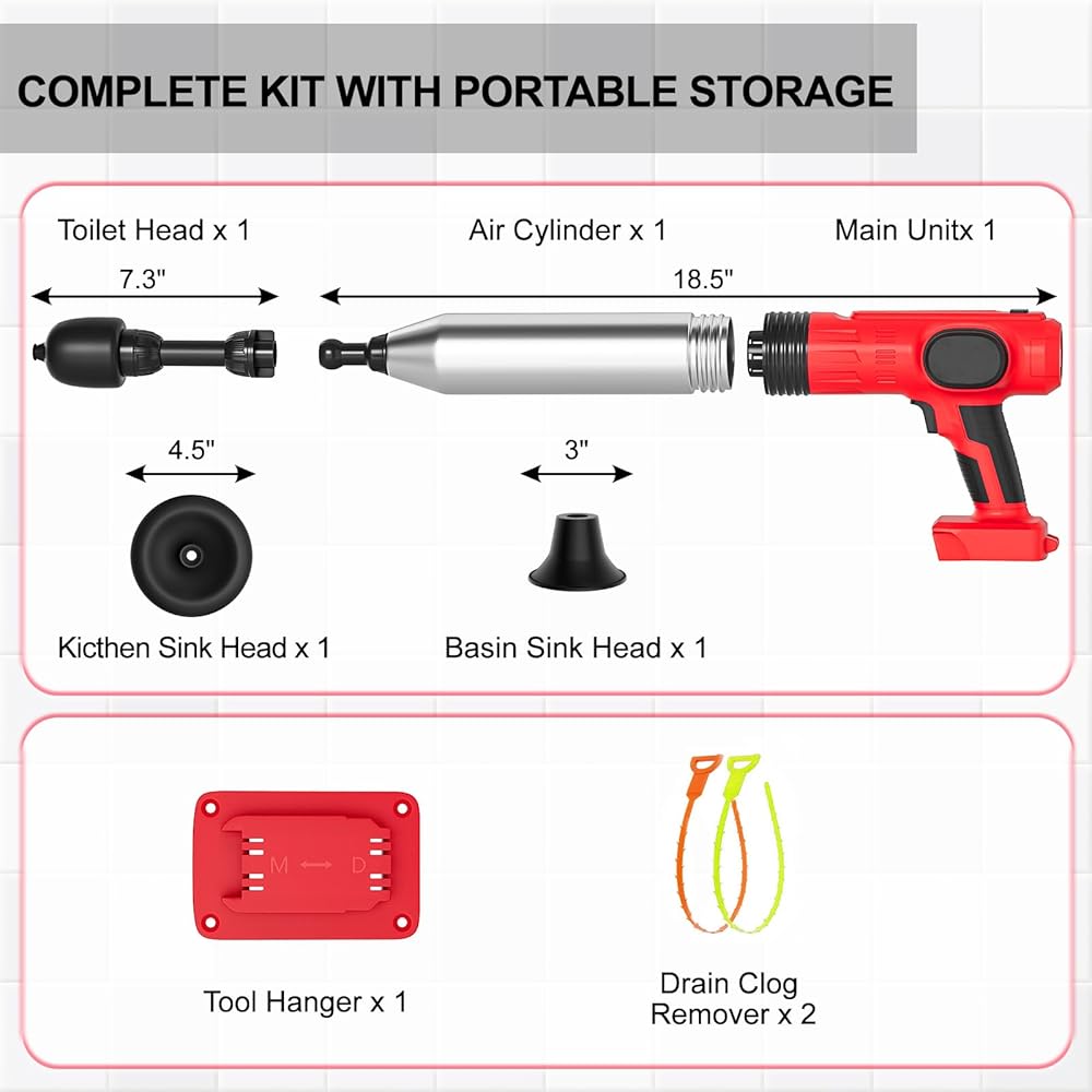 تعمل ببطارية 18 فولت: لا مزيد من الغمر اليدوي! يوفر مكبس المرحاض الكهربائي اللاسلكي Rozlchar أداءً قويًا لفك الضغط العالي بقوة 6 بار (87 رطل لكل بوصة مربعة)، وهو متوافق مع بطاريات Li-ion 18 فولت (بما في ذلك الموديلات 48-11-1820، 48-11-1852، 48-11-1865، 48-11-1880، إلخ.). البطارية غير متضمنة.