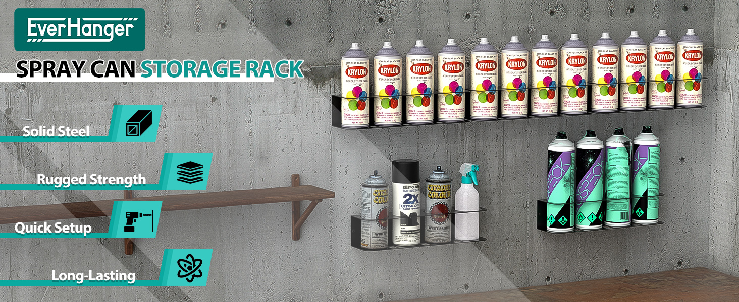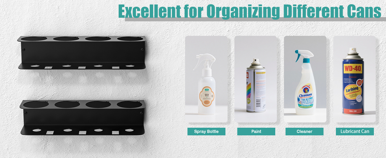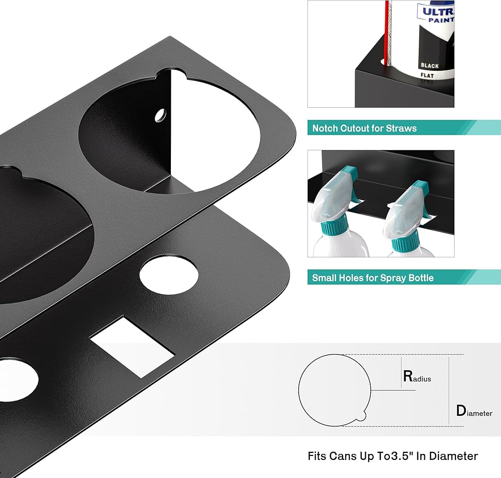 الحجم والتوافق: يمكن لمنظم الطلاء هذا أن يستوعب زجاجات وعلب الرش المختلفة (قطر يصل إلى 3.5 بوصة)، بما في ذلك علب الطلاء والمنظفات وزجاجات التشحيم. لقد تم تصميمه ليتناسب بشكل مثالي مع مسافة 16 بوصة