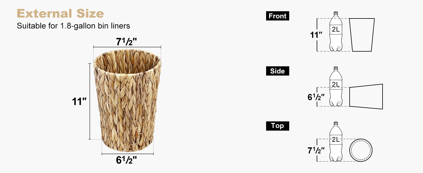 【حجم صغير للمناطق الصغيرة】 مقاس 7.5 بوصة × 6.5 بوصة × 11 بوصة يناسب بسهولة بجانب الأحواض أو المكاتب أو المنضدات الليلية مع توفير سعة نفايات يومية عملية.