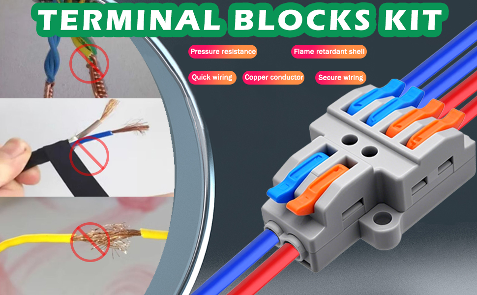 ✔️توافق واسع للأسلاك: يستوعب بسهولة أنواع الأسلاك المتنوعة: الأسلاك الصلبة من 0.08-4 مم² /28-12 AWG والأسلاك المجدولة/المرنة من 0.08-2.5 مم² /28-14 AWG. تحتاج إلى تجريد طول 10 مللي متر. ممتاز لمحبي الأعمال اليدوية، ومستخدمي المنزل، والفنيين.