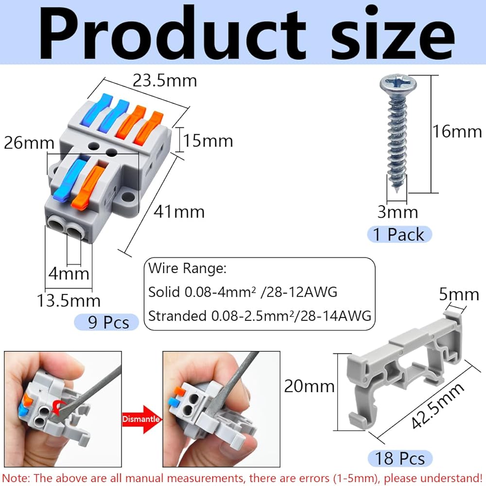 مجموعة الكتل الطرفية 2 في 4 خارج من CESFONJER (9 مجموعات)، موصلات أسلاك الرافعة للإدخال المزدوج إلى أربعة وصلات إخراج، وسكة DIN وحامل لولبي، وموصل كهربائي 28-12AWG، بما في ذلك الأقواس والمسامير