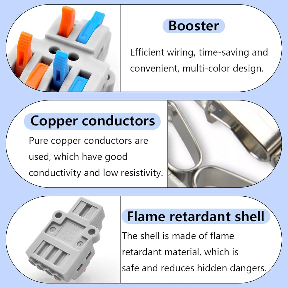 ✔️قوي وآمن حسب التصميم: مصمم بغطاء PA66 ممتاز مقاوم للهب من أجل سلامة فائقة، ونوابض مرنة من الفولاذ المقاوم للصدأ لقوة تثبيت دائمة، ووصلات نحاسية أرجوانية عالية التوصيل لتدفق التيار الأمثل. تم تصنيفه بشكل موثوق لجهد 32 أمبير و600 فولت.