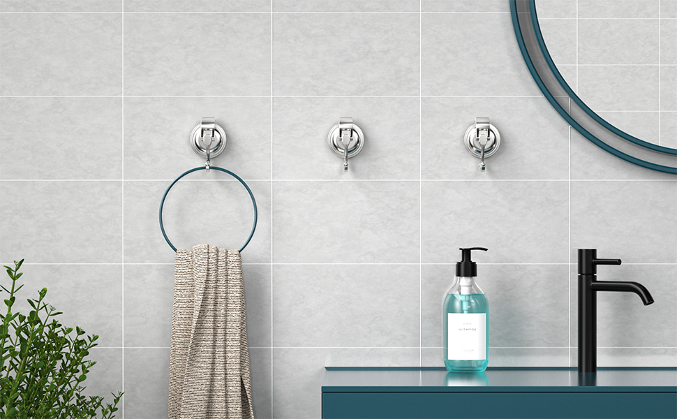【بدون ضرر】لا توجد أدوات، ولا حفر، ولا براغي، ولا ثقوب - وهذا يمنع أي ضرر للهيكل الدائم ويوفر موقع نقل مرن. ما عليك سوى امتصاص خطافات كوب الشفط الموجودة على جدار البلاط.