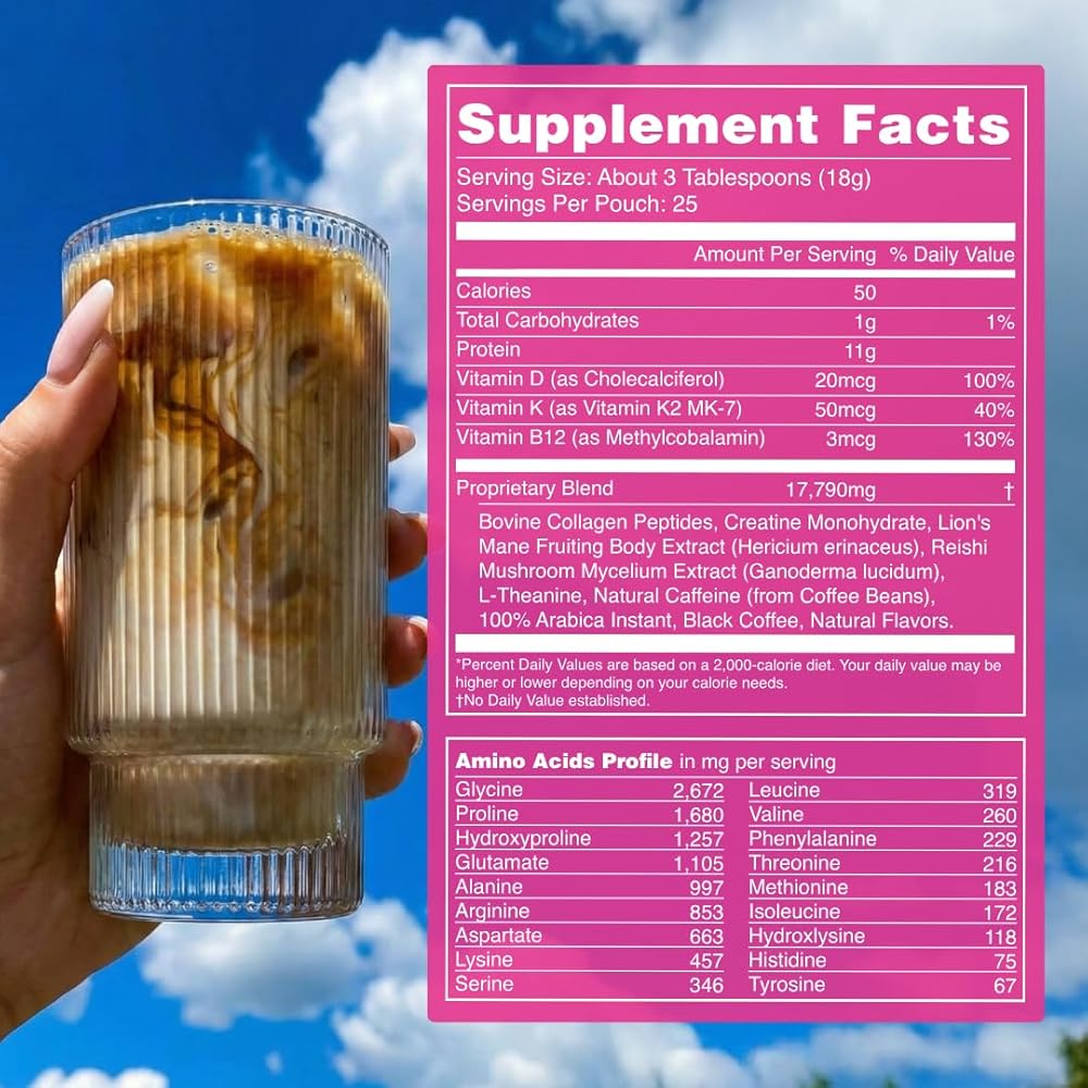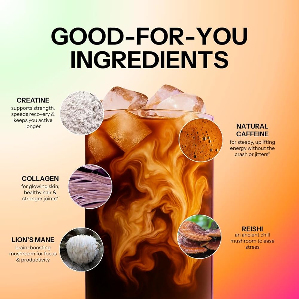 دعم القوة والأداء: قم بتغذية روتينك بمسحوق القهوة البروتيني المدعم بالكرياتين مونوهيدرات لدعم القوة والقدرة على التحمل والأداء اليومي. ترقية فريدة من نوعها على قهوة فطر عرف الأسد النموذجية، حيث تجمع بين البروتين والكولاجين والفطر الوظيفي والقهوة سريعة التحضير في مغرفة واحدة - مما يدعم القوة والتحمل دون الشعور بالثقل أو الشدة المفرطة.
