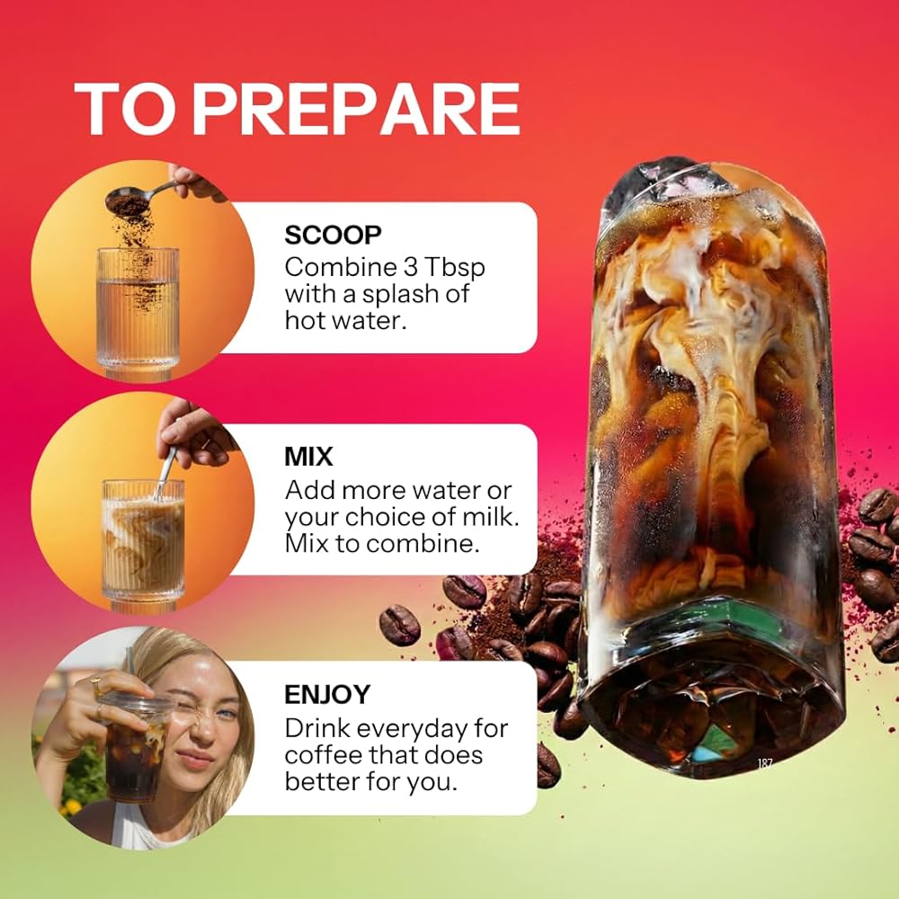 قهوة منخفضة الحموضة تناسب يومك: استمتع بكوب أكثر سلاسة مصنوع من قهوة أرابيكا سريعة التحضير منخفضة الحموضة والتي تكون أسهل في الهضم. مثالية للصباح المزدحم، أو الصباح الخفيف، أو طاقة ما قبل التمرين، أو التركيز بعد الظهر، أو الاستخدام أثناء التنقل - قهوة بروتين الكولاجين النظيفة الخالية من السكر وخالية من منتجات الألبان والتي تتناسب بسلاسة مع يومك دون الشعور بالثقل أو القسوة.