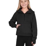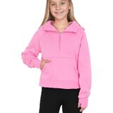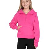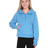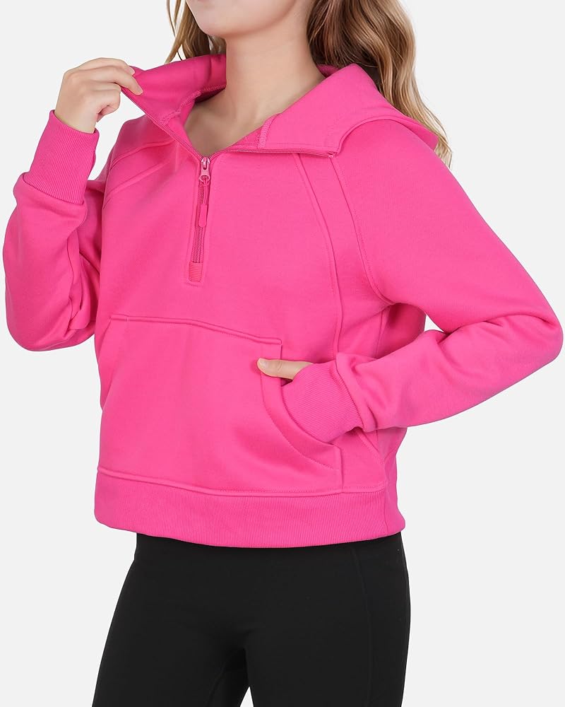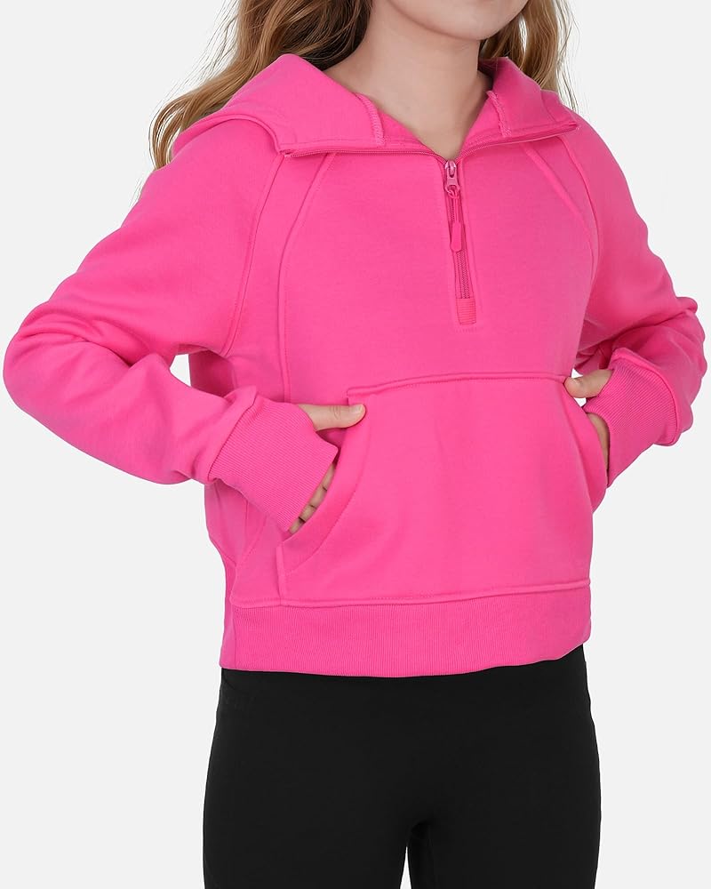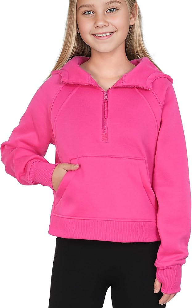 • السمات: بلوفر أنيق للفتيات، كم طويل مع فتحة إبهام، ياقة نصف سحاب، مبطن بالصوف، جيوب كنغر، لون ثابت.