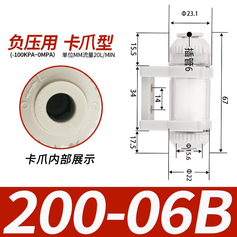ZFC100-06B هوائي الضغط السلبي خط أنابيب الهواء فراغ تصفية 200-08B خرطوشة ZFC54-B الصغيرة 1 قطعة (ZFC200-06B(卡爪型))