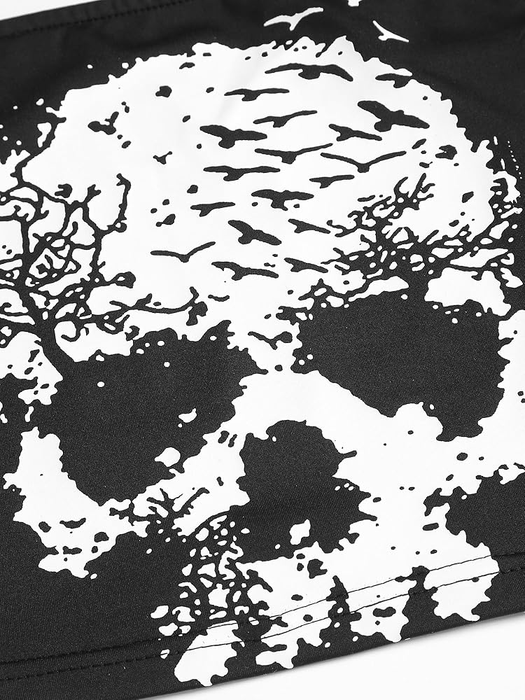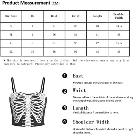• بلوزة قصيرة للهالوين: رقبة واسعة، أشرطة سباغيتي مثيرة، طباعة هيكل عظمي، بدون أكمام وبدون ظهر