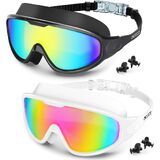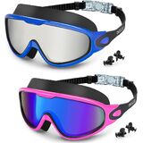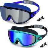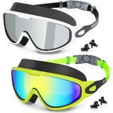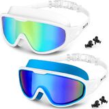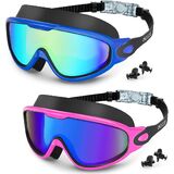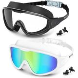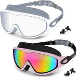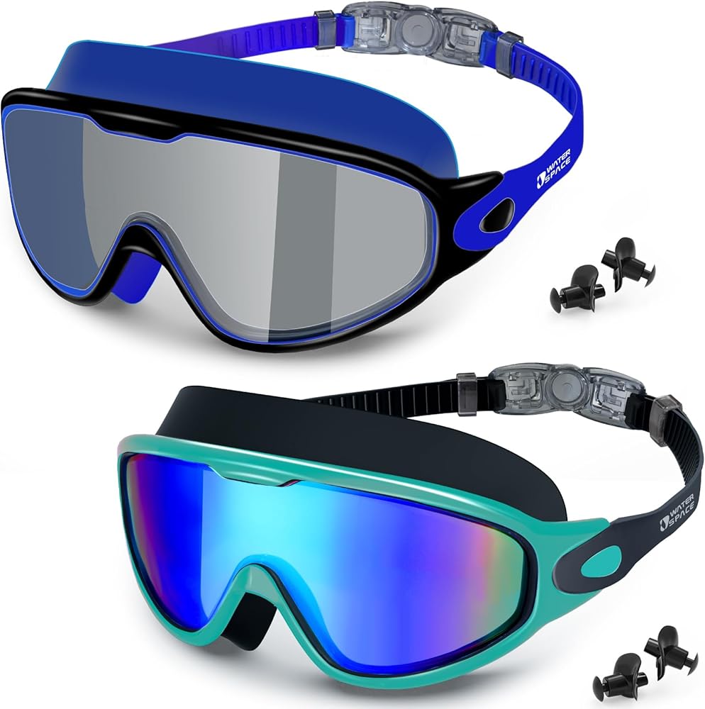 نظارات السباحة في الفضاء المائي، عبوة من قطعتين للرجال والنساء البالغين، مضادة للضباب وحماية من الأشعة فوق البنفسجية ولا تسرب رؤية واسعة 180 درجة، نظارات رؤية واضحة لحمام السباحة