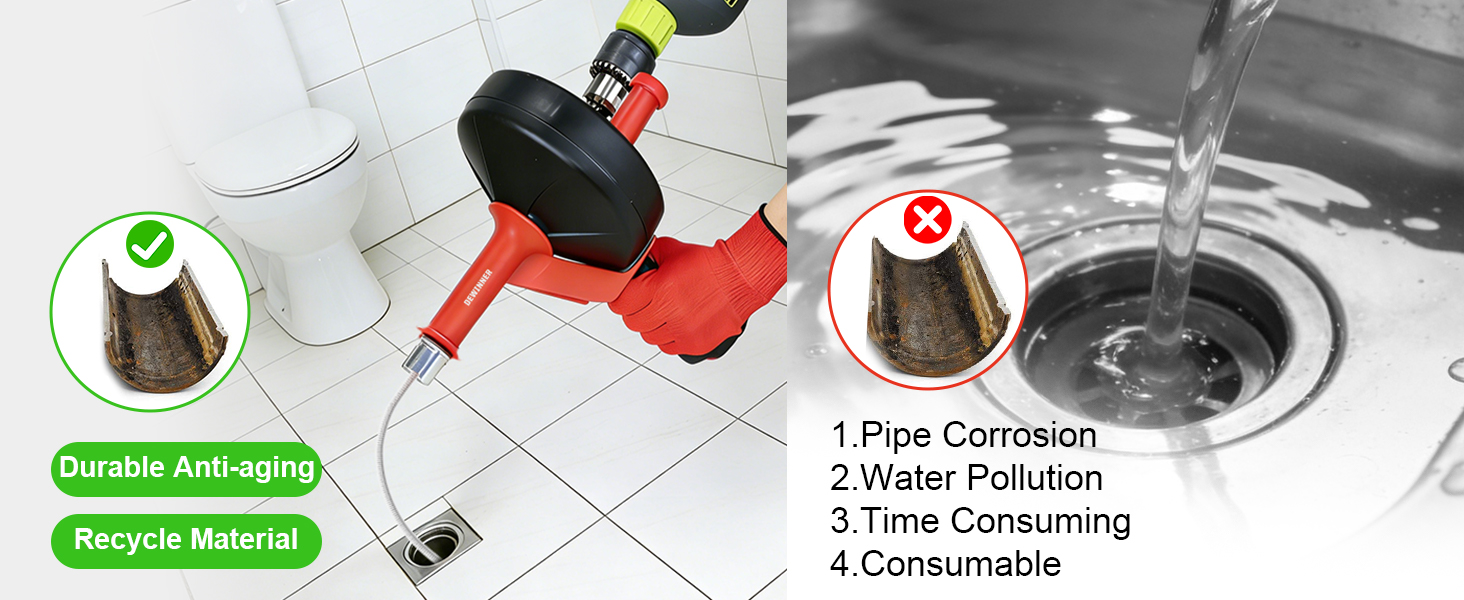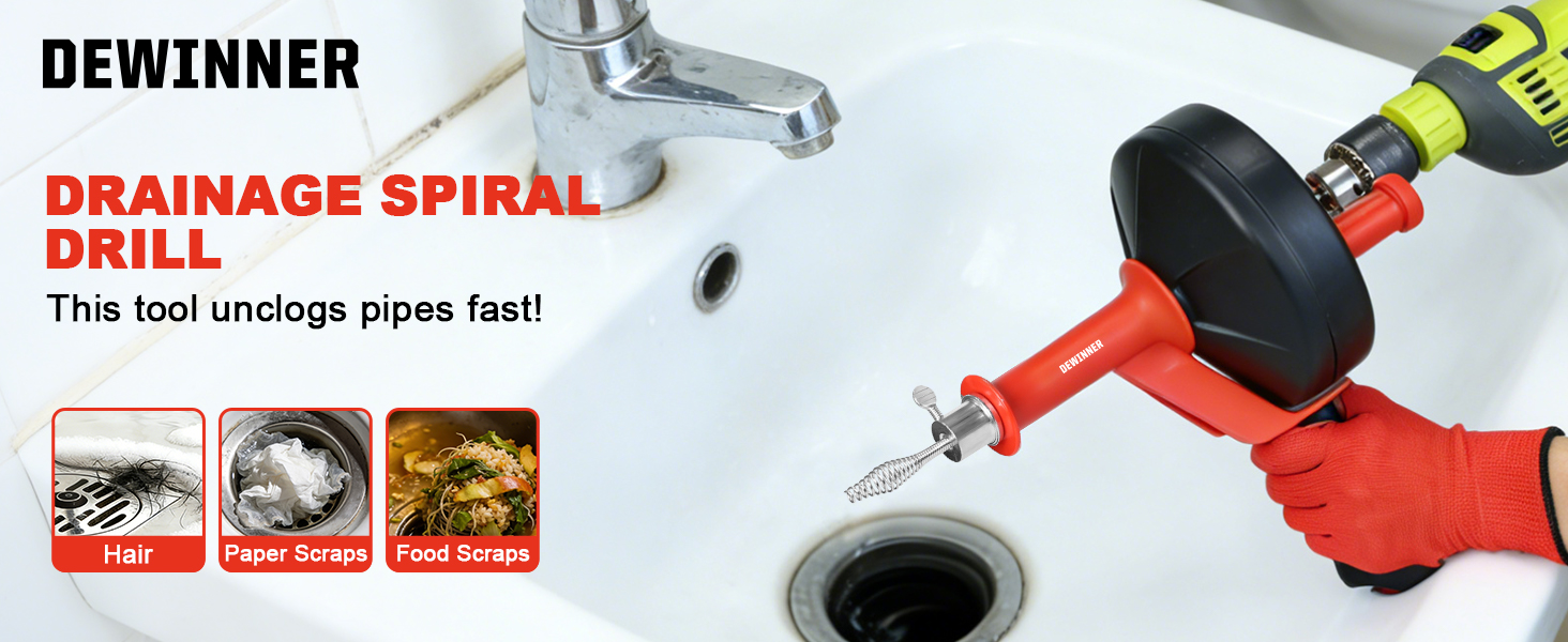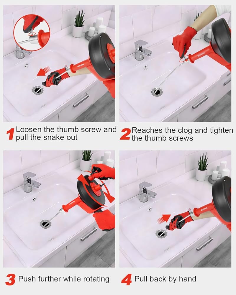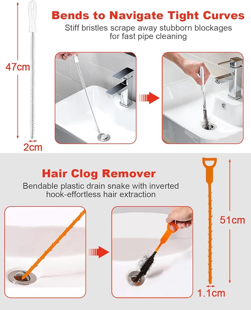 تنظيف عميق: كابل فولاذي مرن بطول 10 أمتار / 33 قدمًا يصل إلى عمق أنابيب الصرف المنزلية؛ يساعد على إزالة الانسدادات الشائعة مثل تراكم الشعر وبقايا الطعام ورواسب الصابون من مصارف المطبخ والحمام والدش