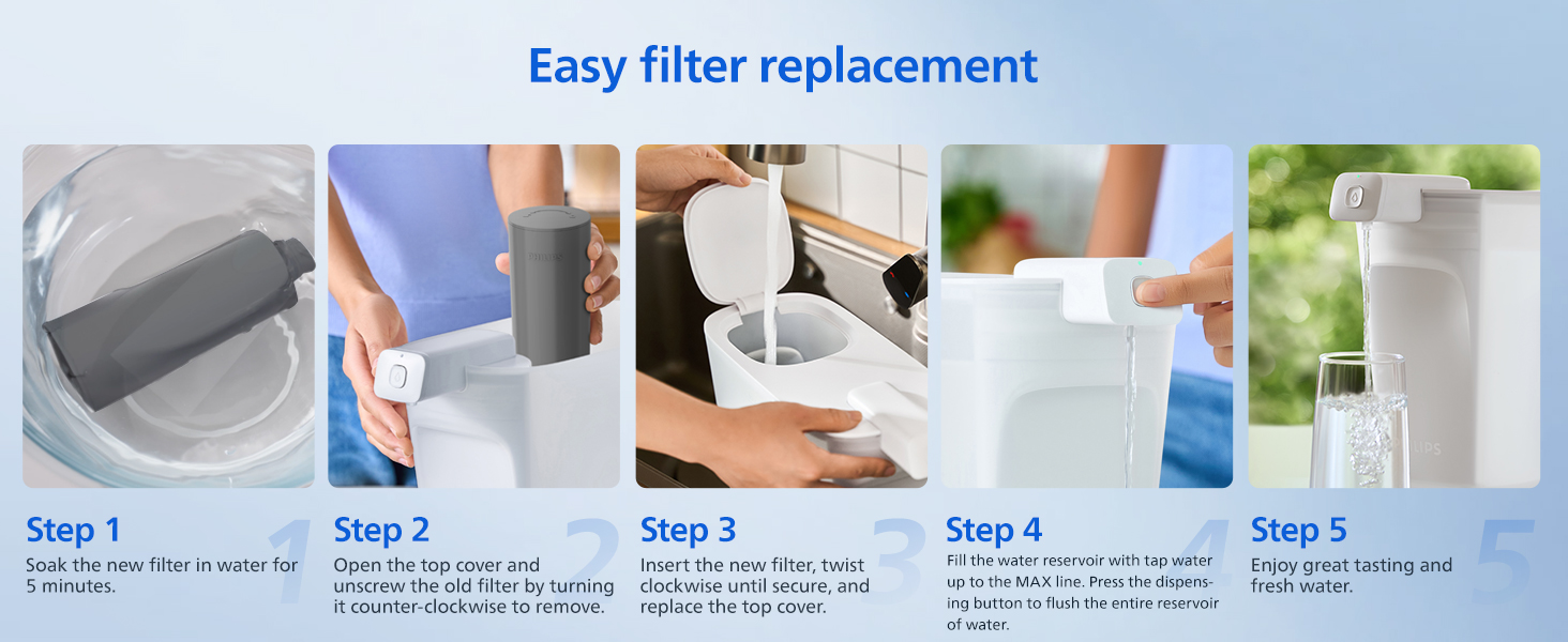 ✓ جيد للبيئة: استمتع بمياه نقية المذاق ليست فعالة من حيث التكلفة فحسب، بل صديقة للبيئة أيضًا. مع كل فلتر من Philips plus، ستوفر أكثر من 1350 زجاجة بلاستيكية تستخدم لمرة واحدة، مما يساهم بشكل كبير في تقليل النفايات البلاستيكية* (*تعتمد المقارنة على زجاجات المياه المعبأة سعة 16.9 أونصة).
