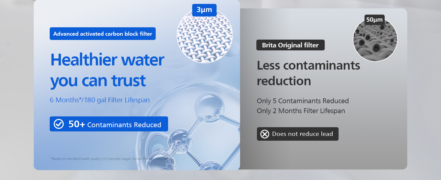 ✓ فلتر واحد لمدة 6 أشهر: يمكن استخدام كل خرطوشة فلتر PHILIPS Pro لمدة 6 أشهر تقريبًا* أو يمكنها تصفية 180 جالونًا من الماء، أو 4 مرشحات توفر إجمالي 24 شهرًا أو 720 جالونًا من الماء النقي المذاق عند الشراء.