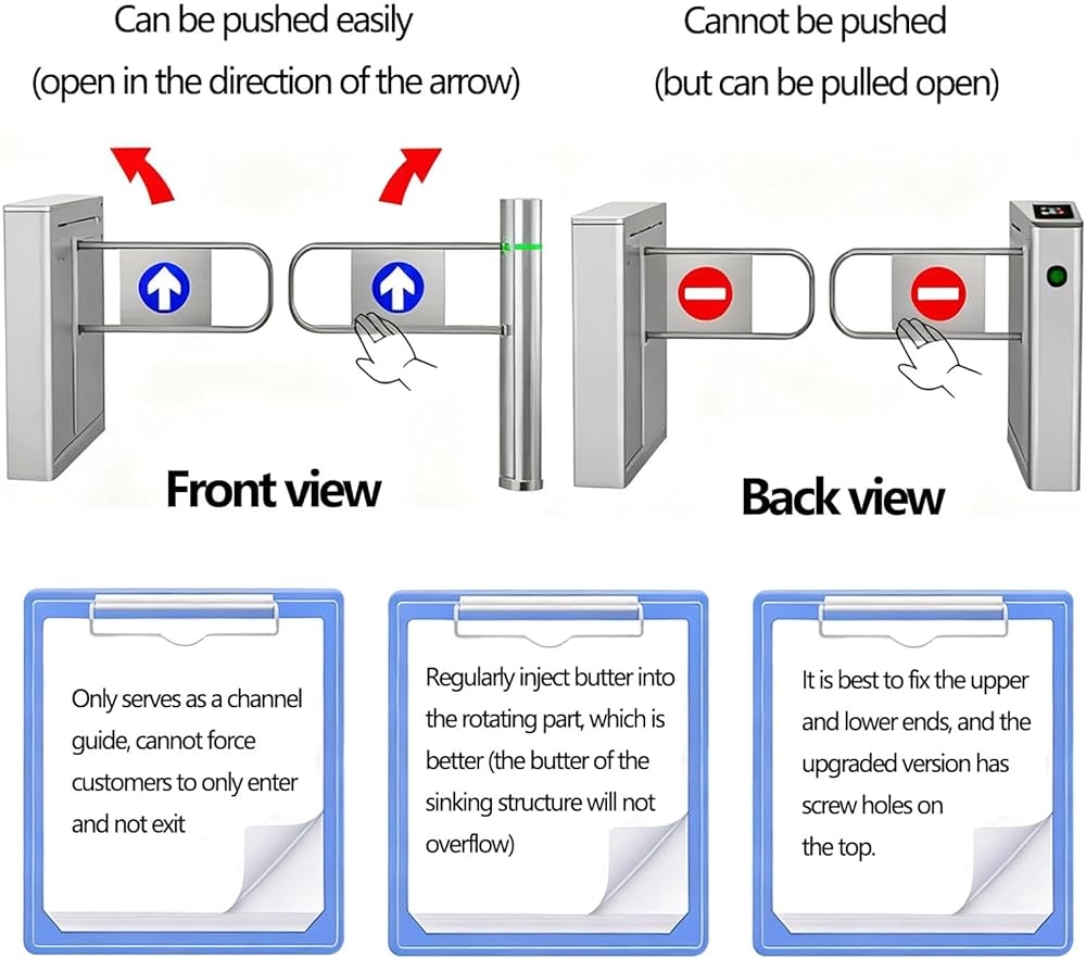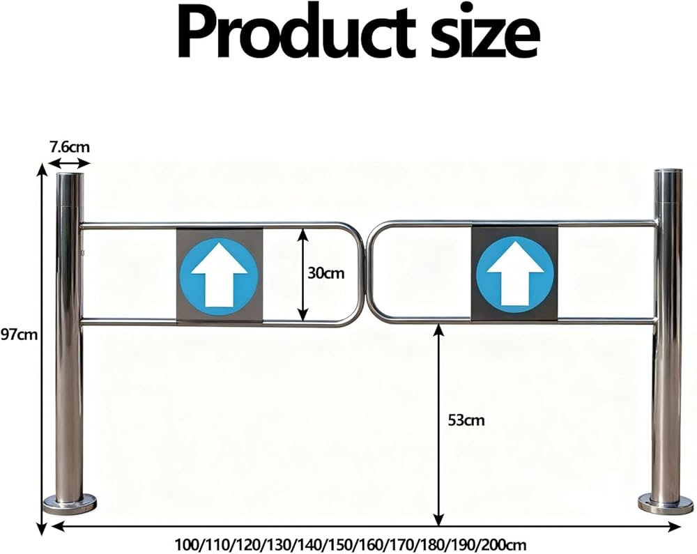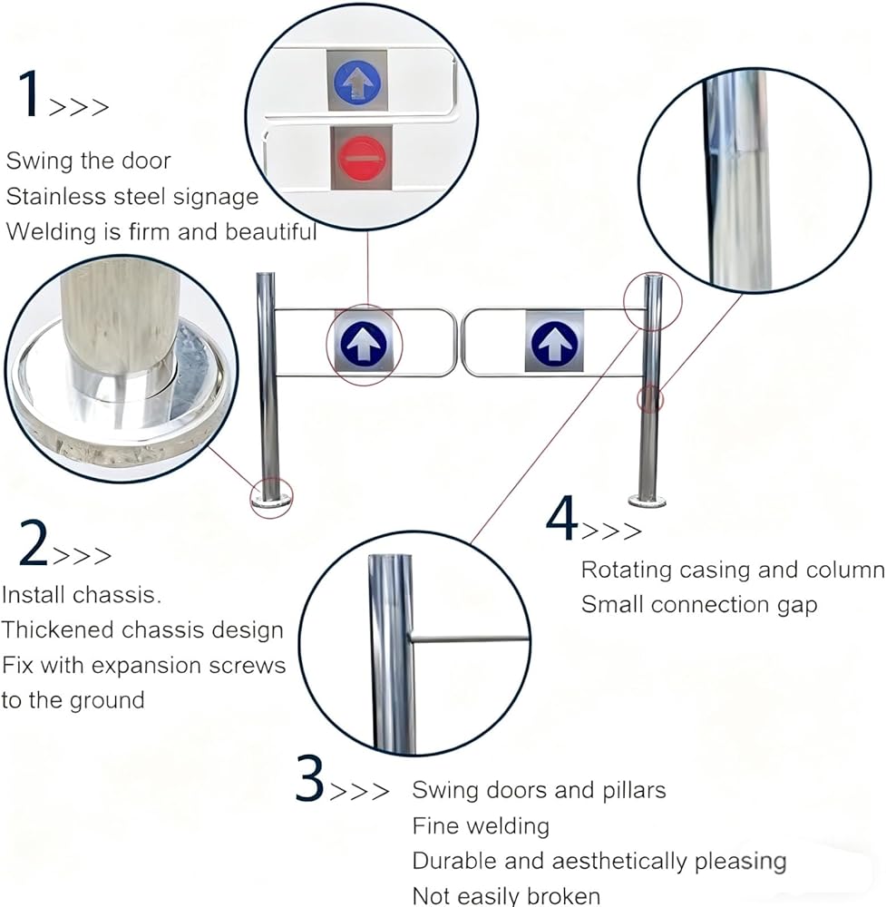 4,Durable Construction: Made from high-quality Stainless Steel, this heavy-duty Supermarket Swing Gate features excellent Waterproof and Wear-Resistant properties. Its Industrial-Grade design ensures smooth operation with low maintenance, making this Automatic Swing Gate ideal for Indoor and Outdoor environments where durability and cleanliness are essential for optimal performance.