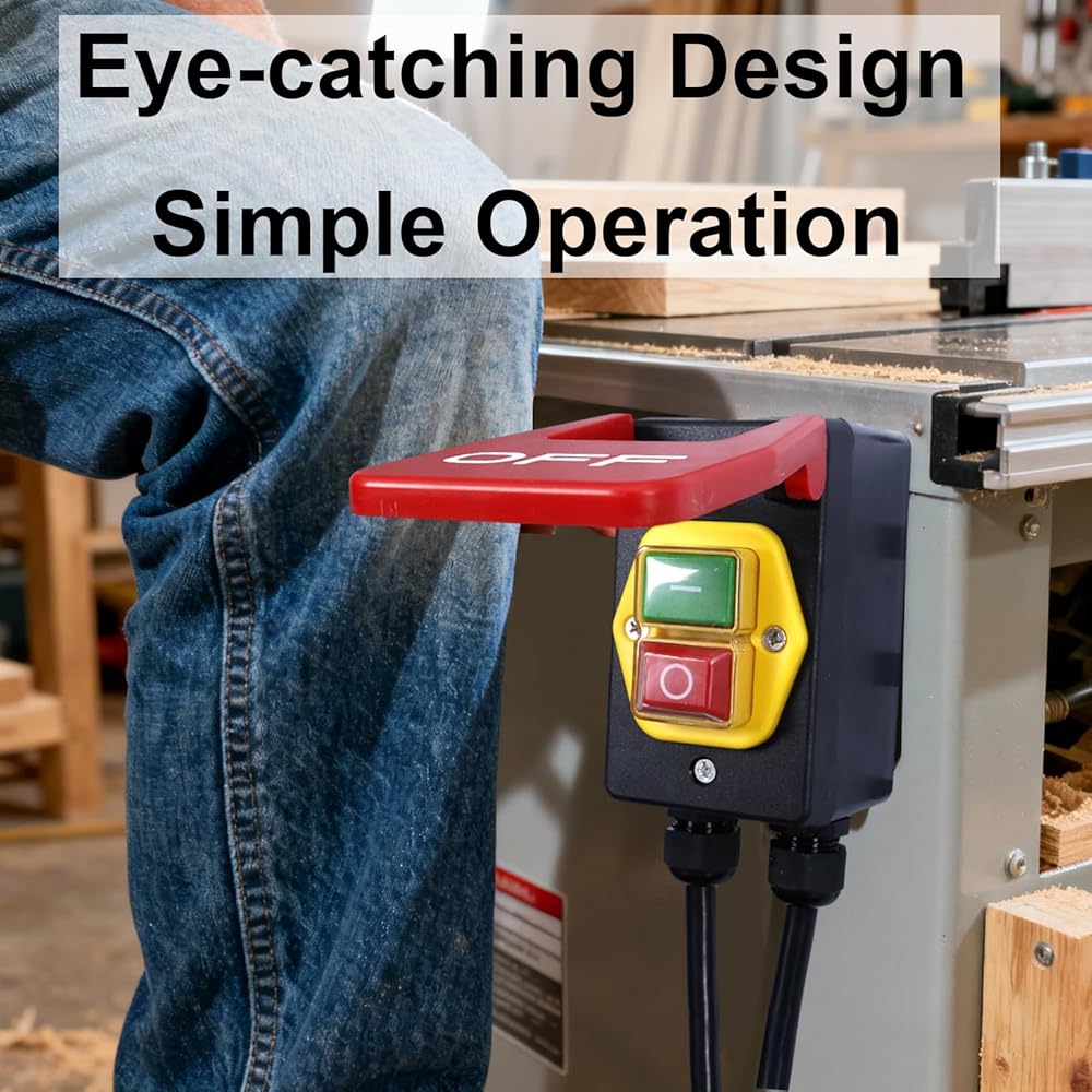 The HIITIO 110V Single Phase Safety Paddle Switch is designed to make your workshop operations safer, smarter, and more efficient. With its no hands required for operation design, you can power tools on or off using your knee or hip—keeping your hands securely on your project and your focus where it matters. The large red “OFF” paddle ensures instant emergency response, while the recessed green “ON” button prevents accidental starts. Constructed with industrial-grade materials, the HIITIO Paddle Switch withstands dust, moisture, and vibration, making it ideal for workshops, garages, and professional studios. Installation is simple—just plug it in, mount it, and start working. Whether you're a DIY enthusiast or a professional craftsman, the HIITIO Paddle Switch offers unmatched safety, hands-free convenience, and reliable performance for your woodworking and power tool applications.