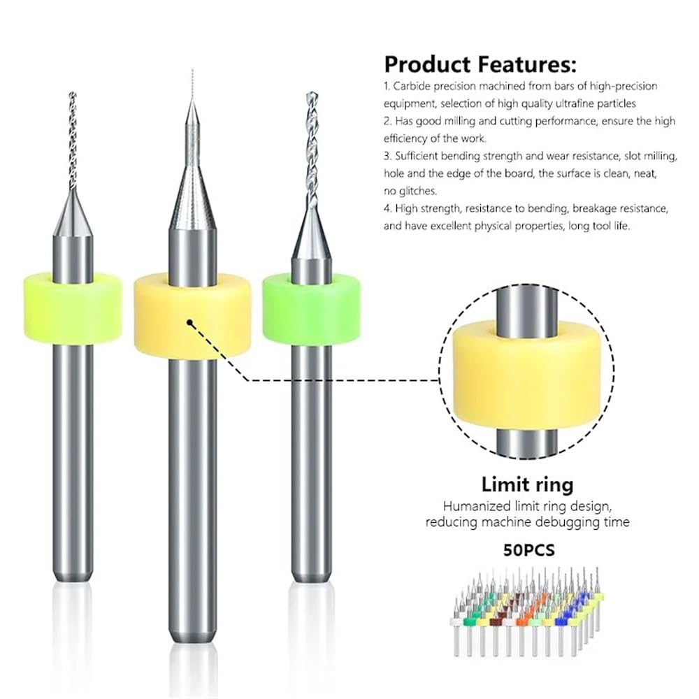 لقمة مثقاب PCB 0.3-1.2 مللي متر كربيد للوحة دوائر الحفر 1/8 بوصة عرقوب 50 قطعة